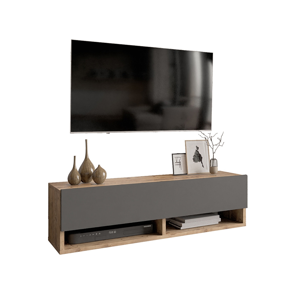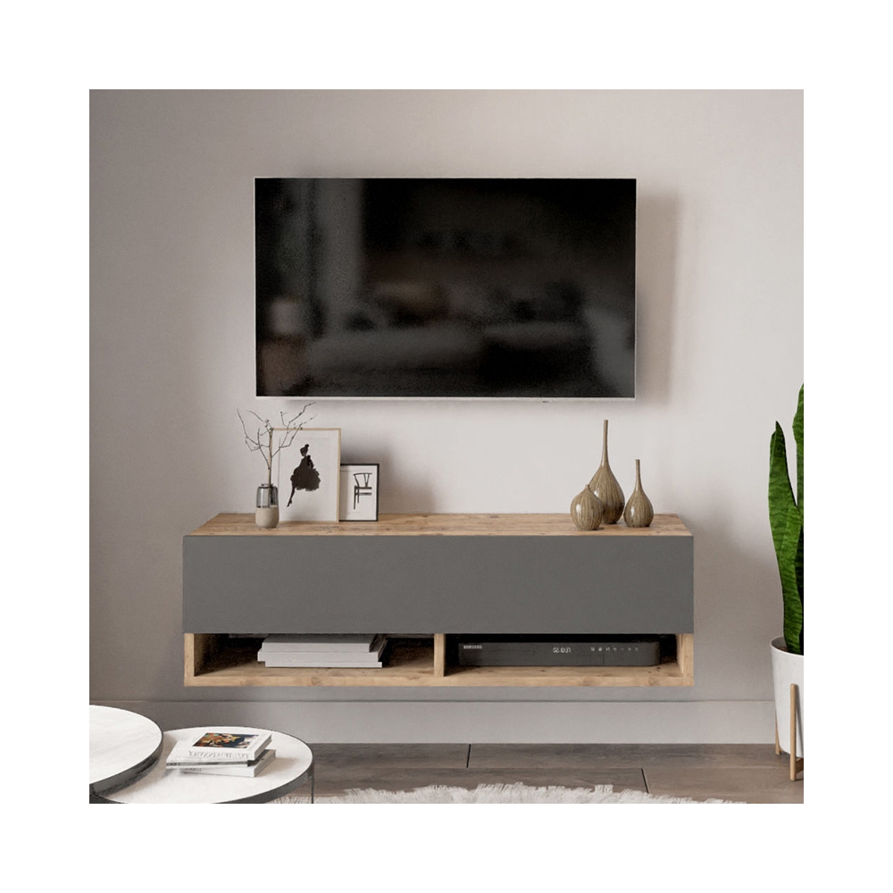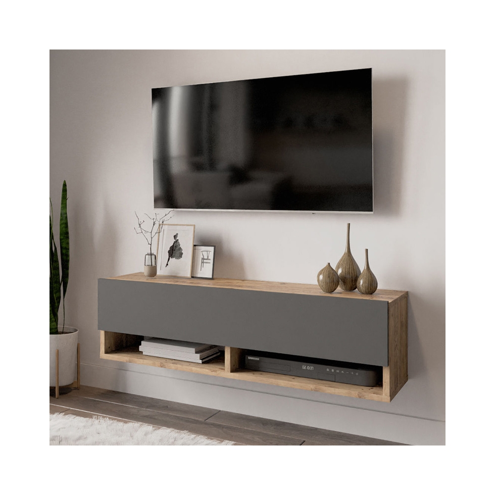 Έπιπλο τηλεόρασης επιτοίχιο Roscoe pakoworld ανθρακί-oak 100x31,5x29εκ