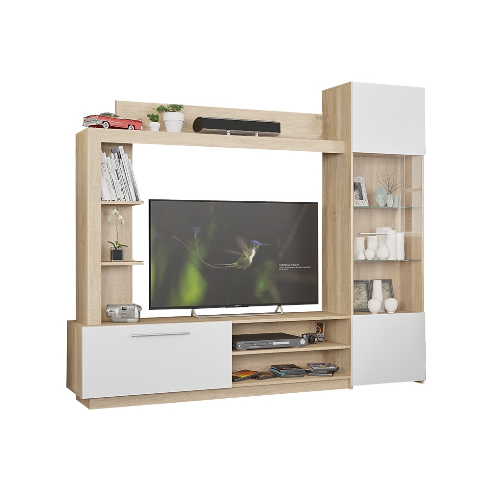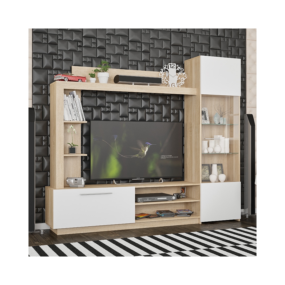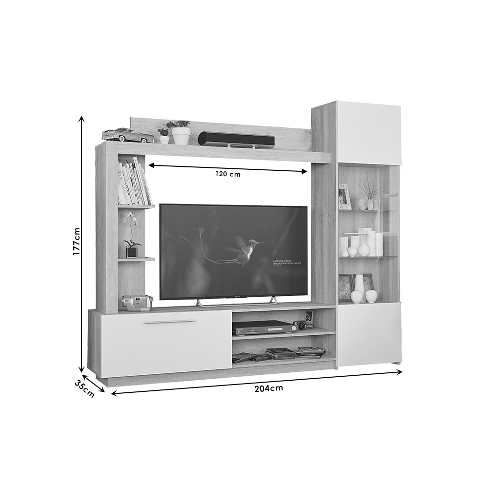 Σύνθετο σαλονιού June pakoworld sonoma-λευκό 204x35x177εκ