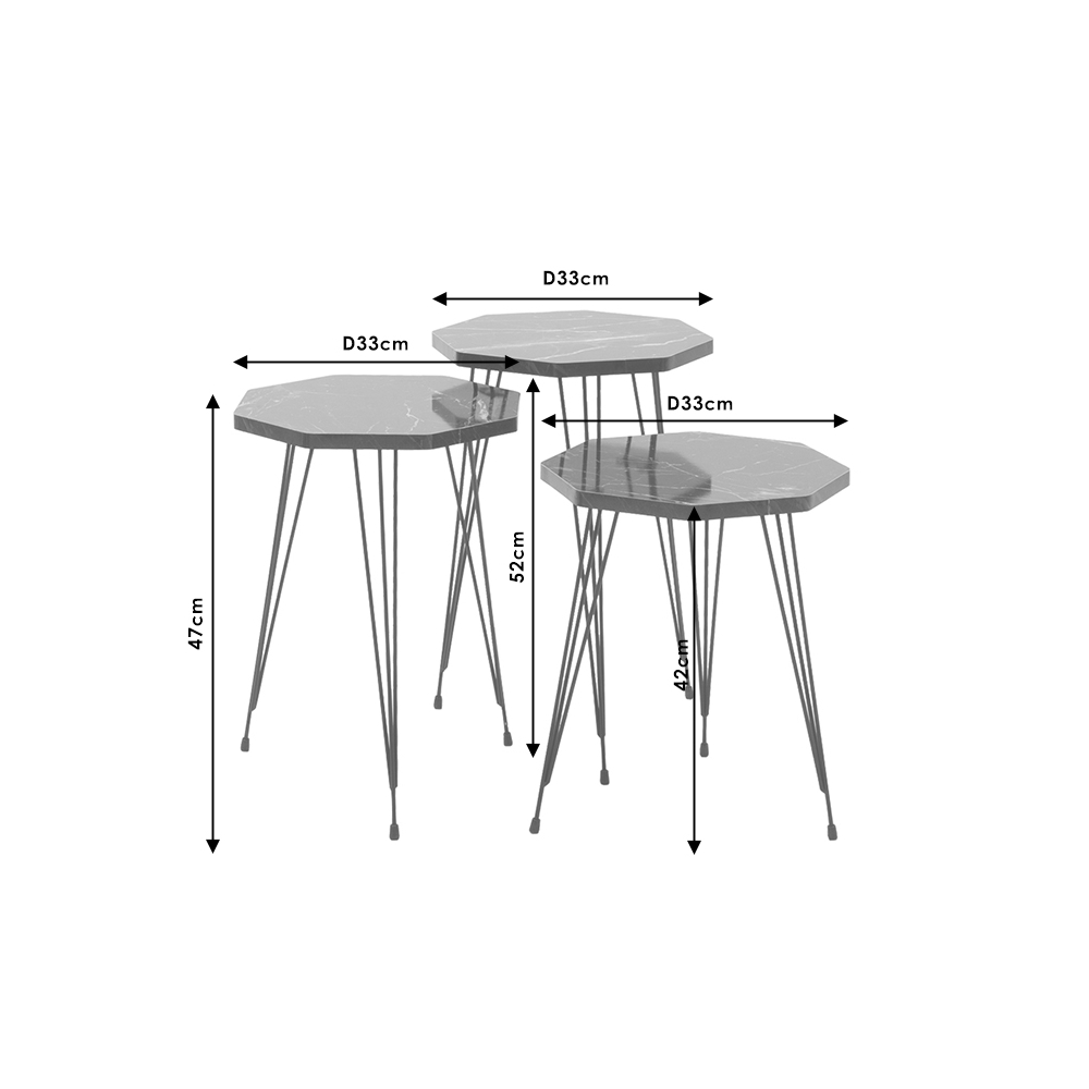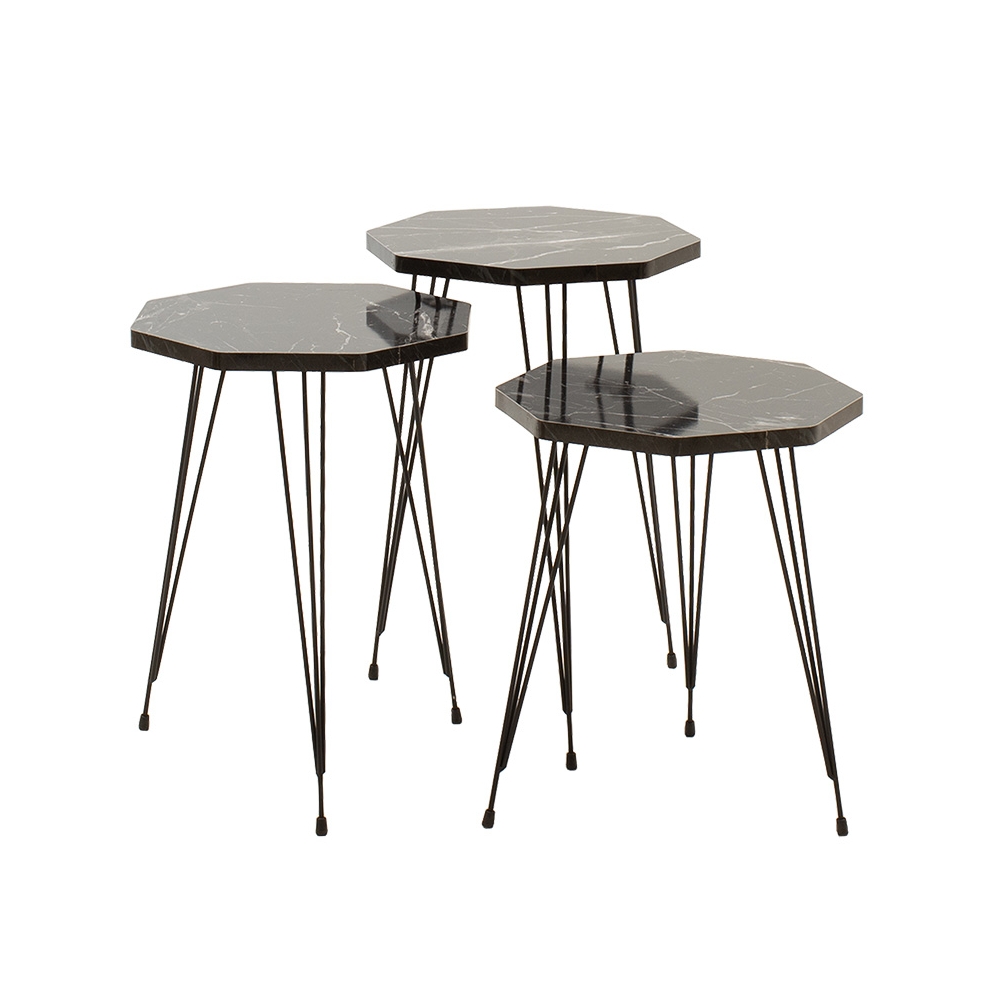 Βοηθητικά τραπέζια σαλονιού Buena pakoworld σετ 3τεμ μαύρο μαρμάρου-μαύρο