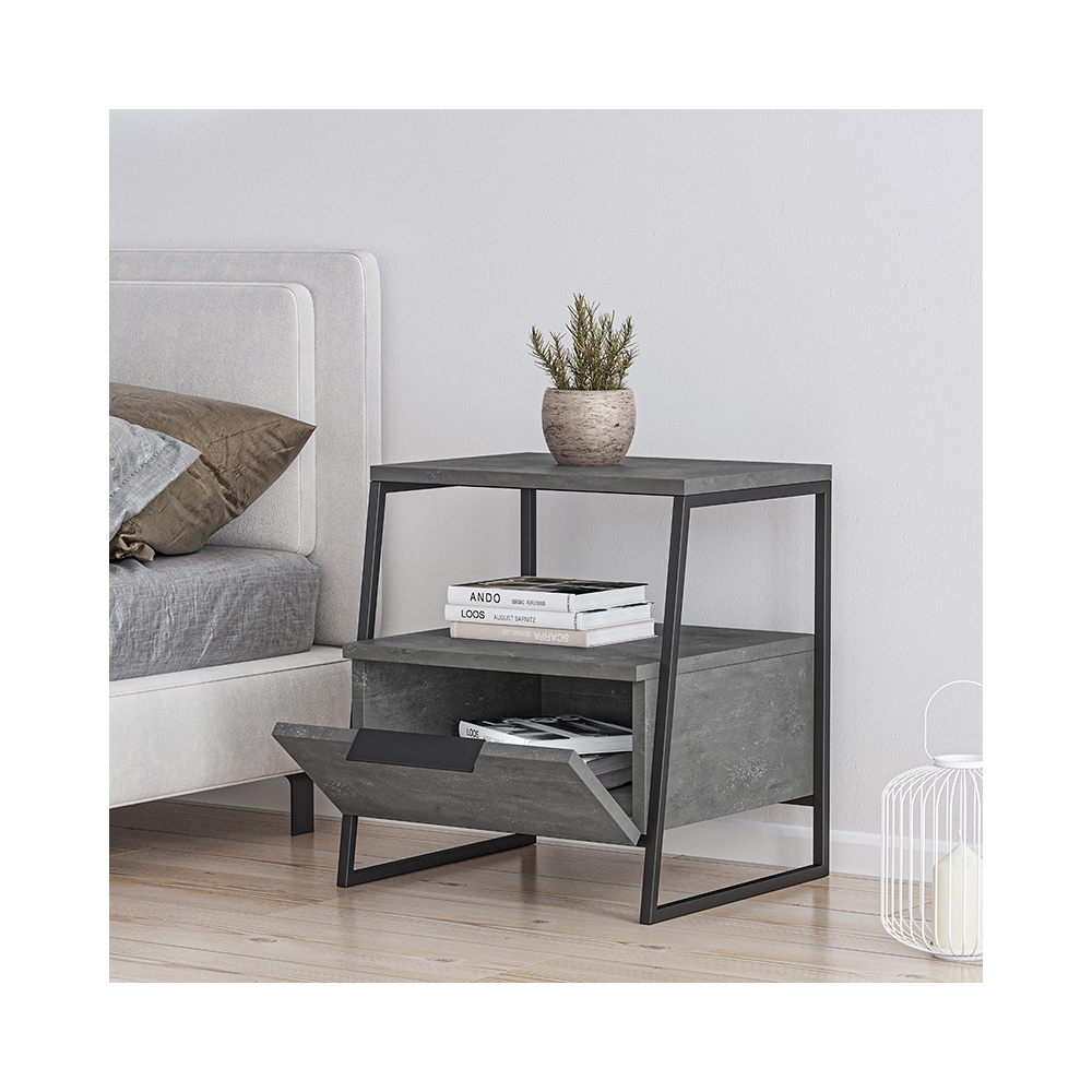 Κομοδίνο Johana pakoworld μαύρο-γκρι antique 45x40x50εκ