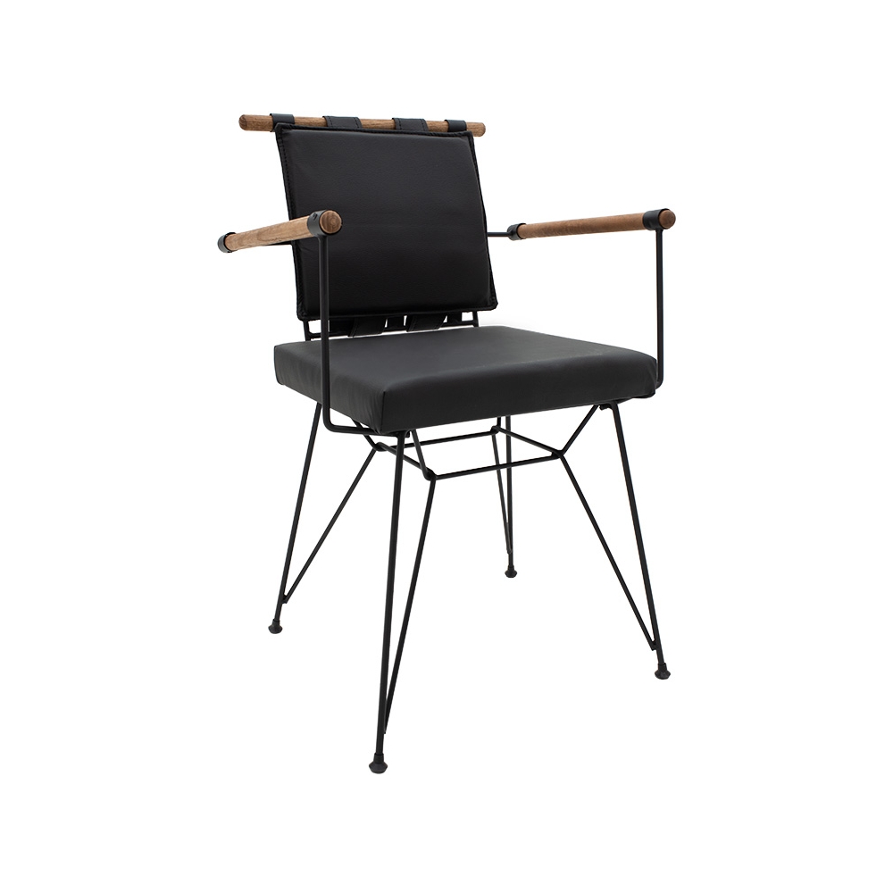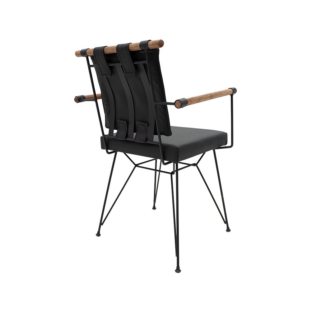 Επένδυση καθίσματος με ξύλο και μαξιλάρι από τεχνόδερμα PU εξαιρετικής ανθεκτικότητας και foam σε μαύρο χρώμα.