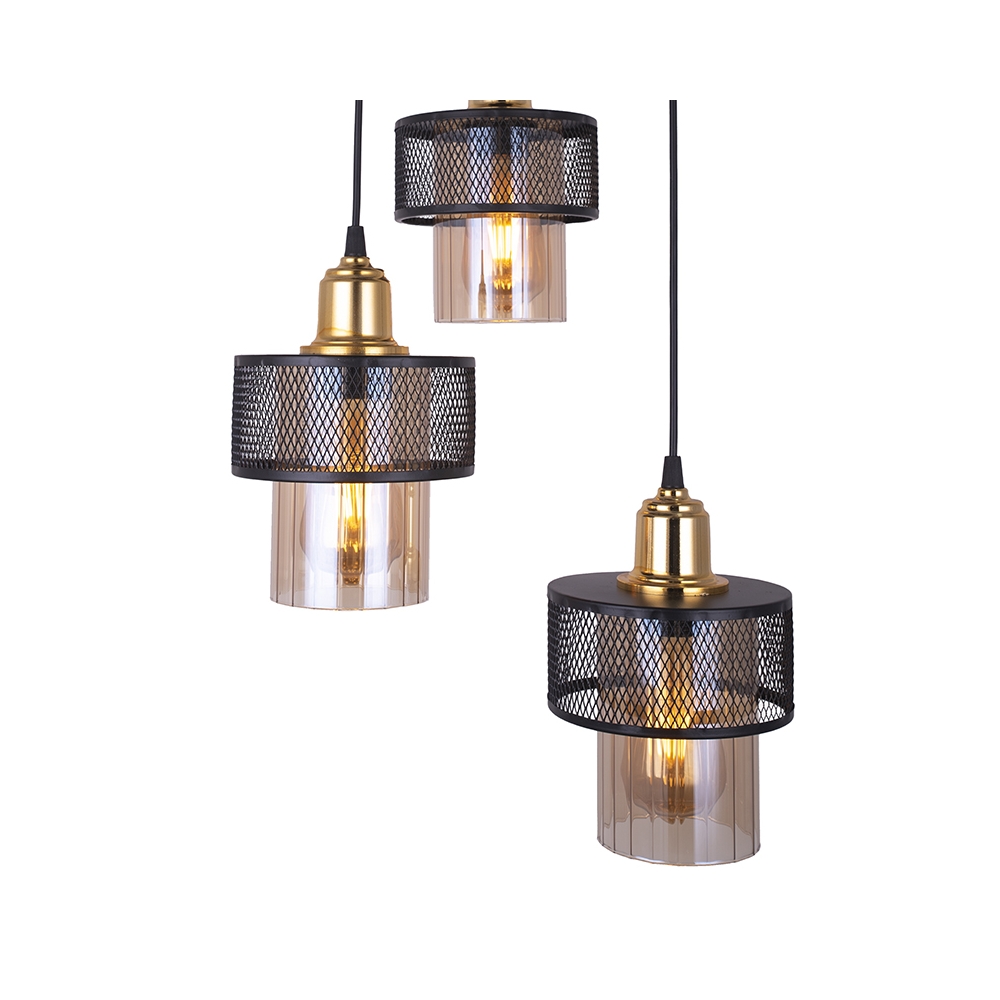 Φωτιστικό οροφής τρίφωτο PWL-1045 pakoworld Ε27 μαύρο-χρυσό Φ30x85εκ