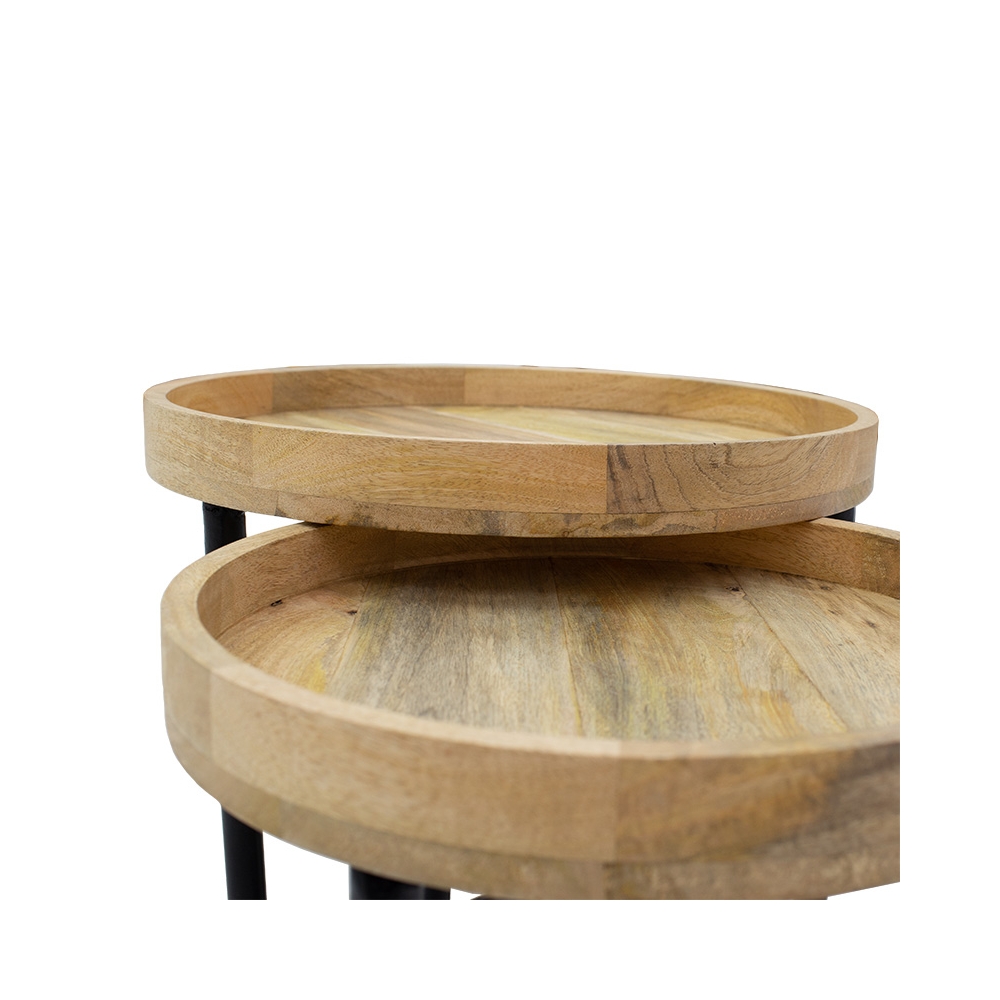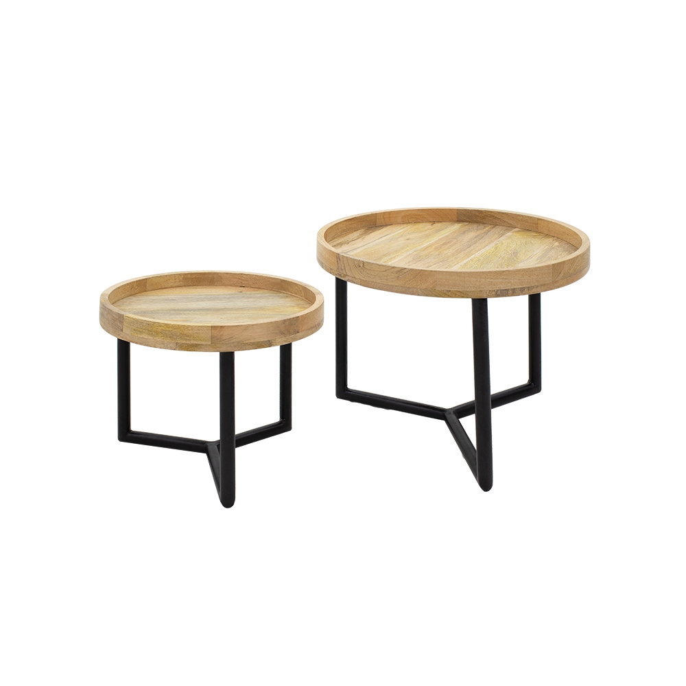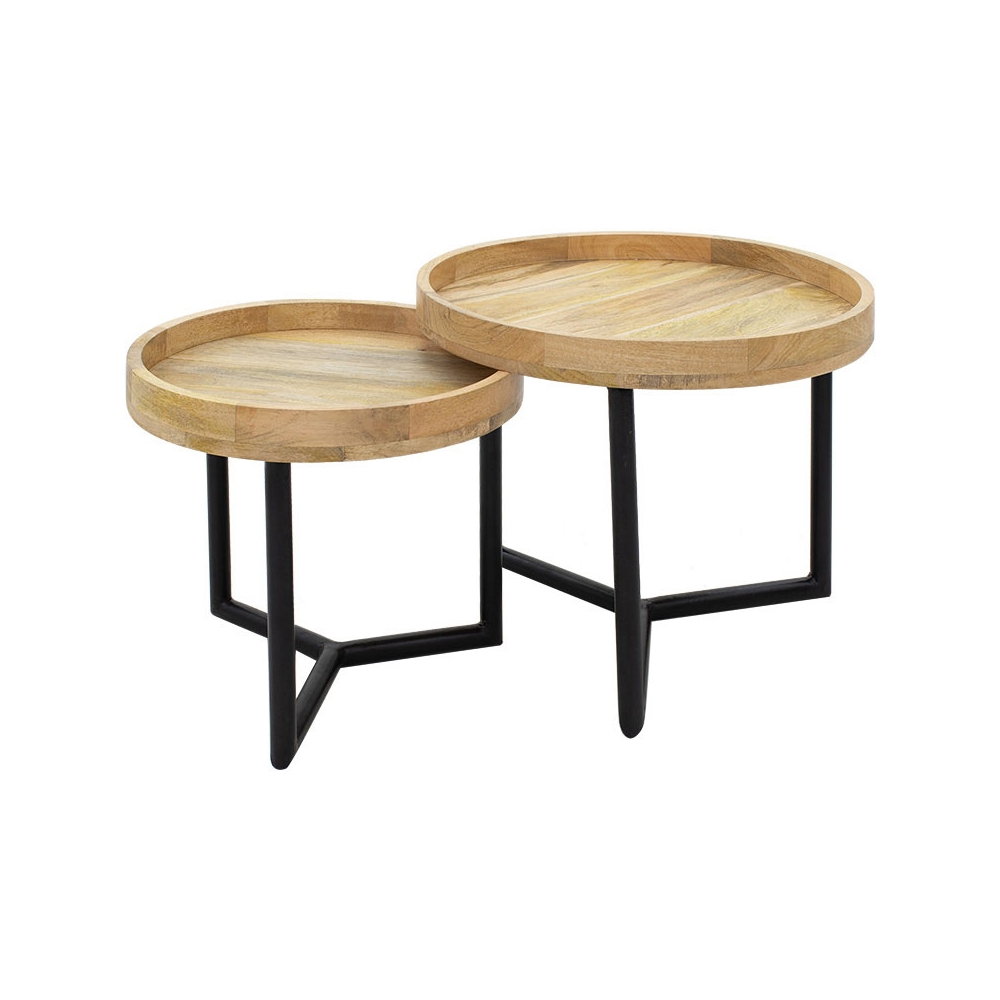 Τραπέζι σαλονιού Kelly σετ 2τεμ pakoworld μασίφ ξύλο φυσικό-μαύρο