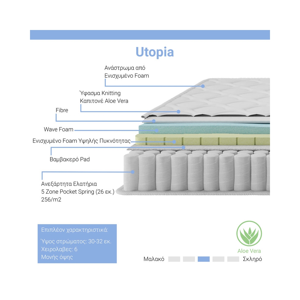 Για εσάς που η επιλογή του σωστού στρώματος είναι προυπόθεση για να είστε πάντα ξεκούραστοι και γεμάτοι ενέργεια στη διάρκεια της μέρας, τότε το Utopia είναι κατασκευασμένο αποκλειστικά για εσάς.