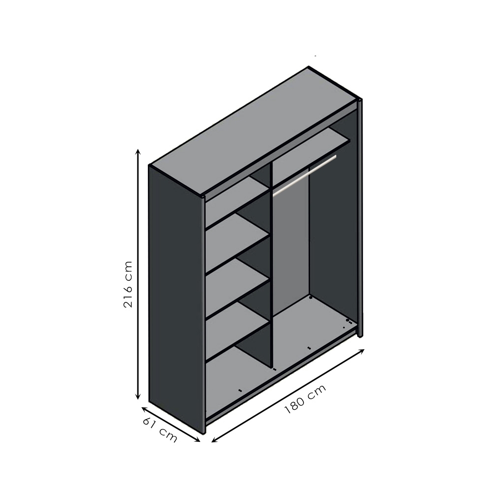 - Στο εσωτερικό περιλαμβάνει μία βέργα για κρεμάστρες και πέντε ράφια.