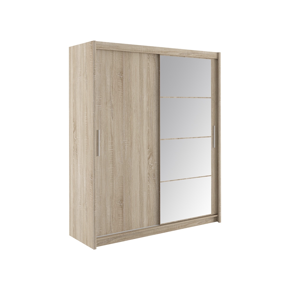 Ντουλάπα ρούχων Elodie pakoworld δίφυλλη καθρέπτης συρόμενη sonoma 180x61x216εκ