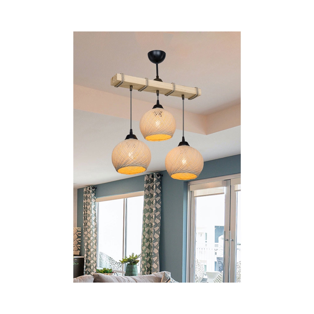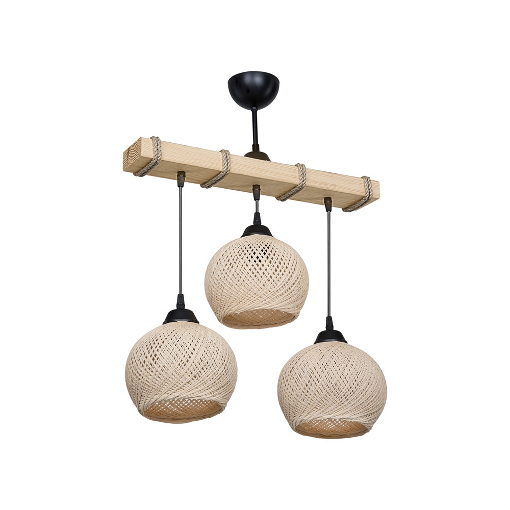 - Περιμετρικά του ξύλου φέρει σχοινί που προσθέτει μία boho πινελιά στο φωτιστικό και απογειώνει το αισθητικό αποτέλεσμα.