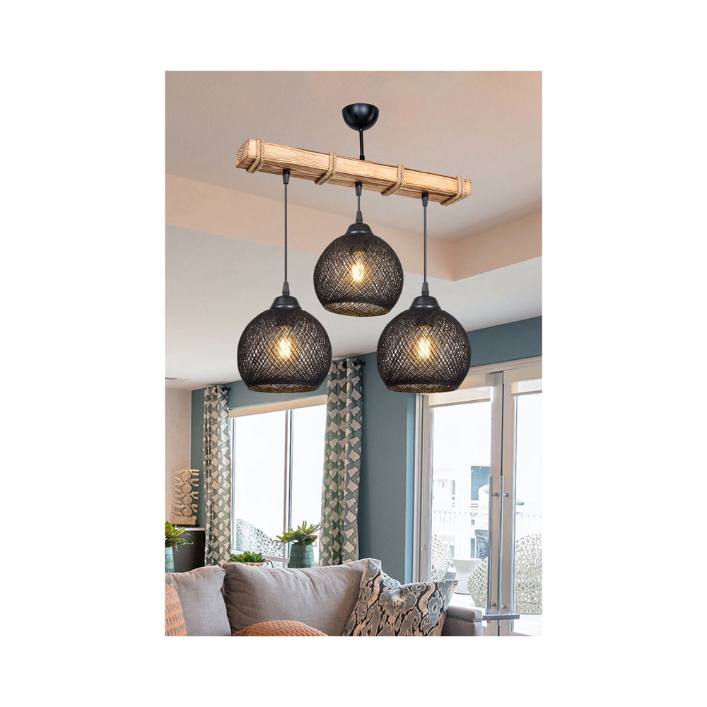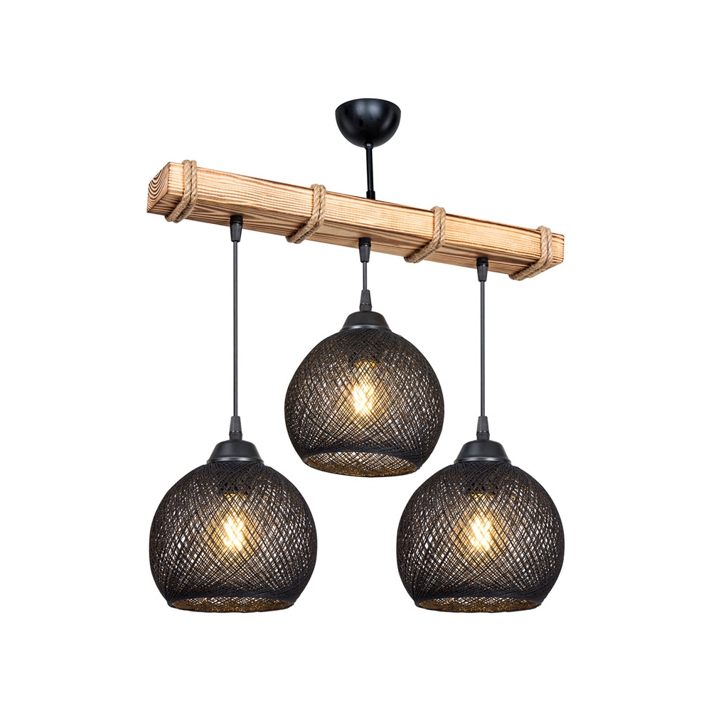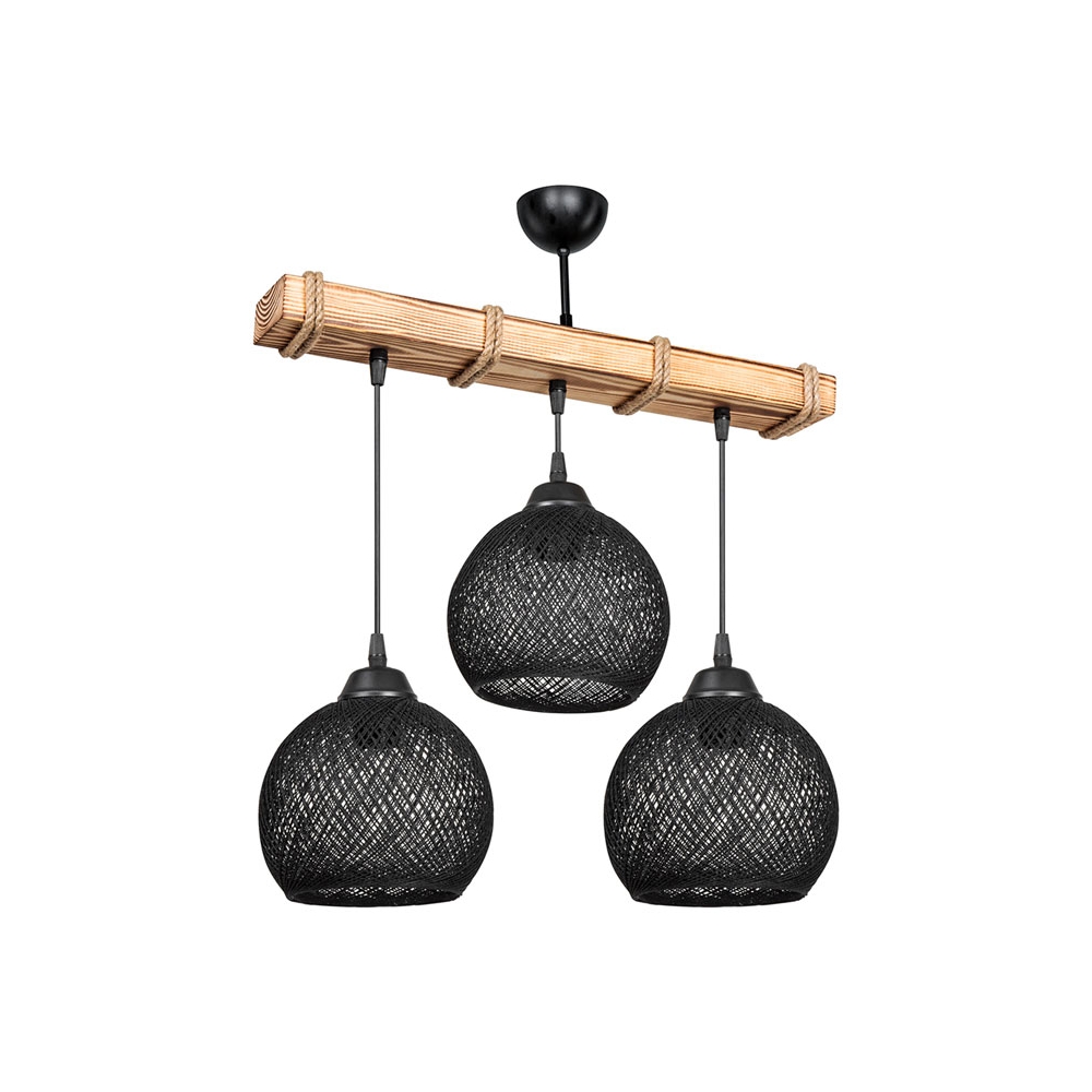 Φωτιστικό οροφής τρίφωτο Fiona pakoworld Ε27 μαύρο-φυσικό 50x20x63εκ