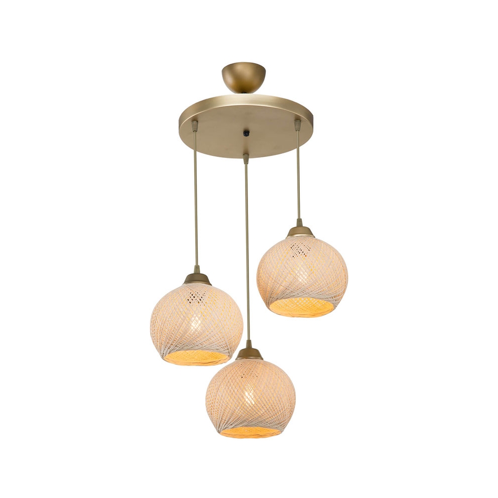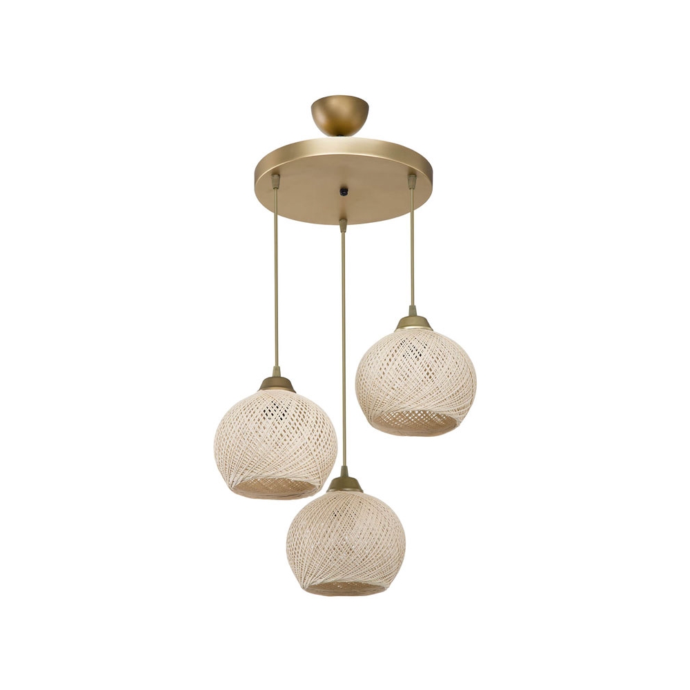 Φωτιστικό οροφής τρίφωτο PWL-1121 pakoworld Ε27 κρεμ-χρυσό Φ40x75εκ