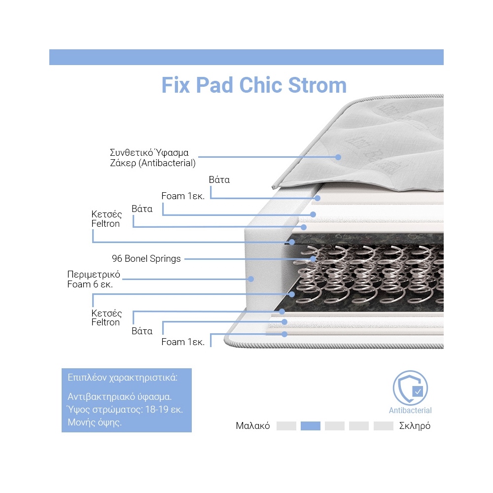 Στρώμα Fix Pad Chic Strom μονής όψης 18-19cm 160x200εκ Pakoworld 207-000008