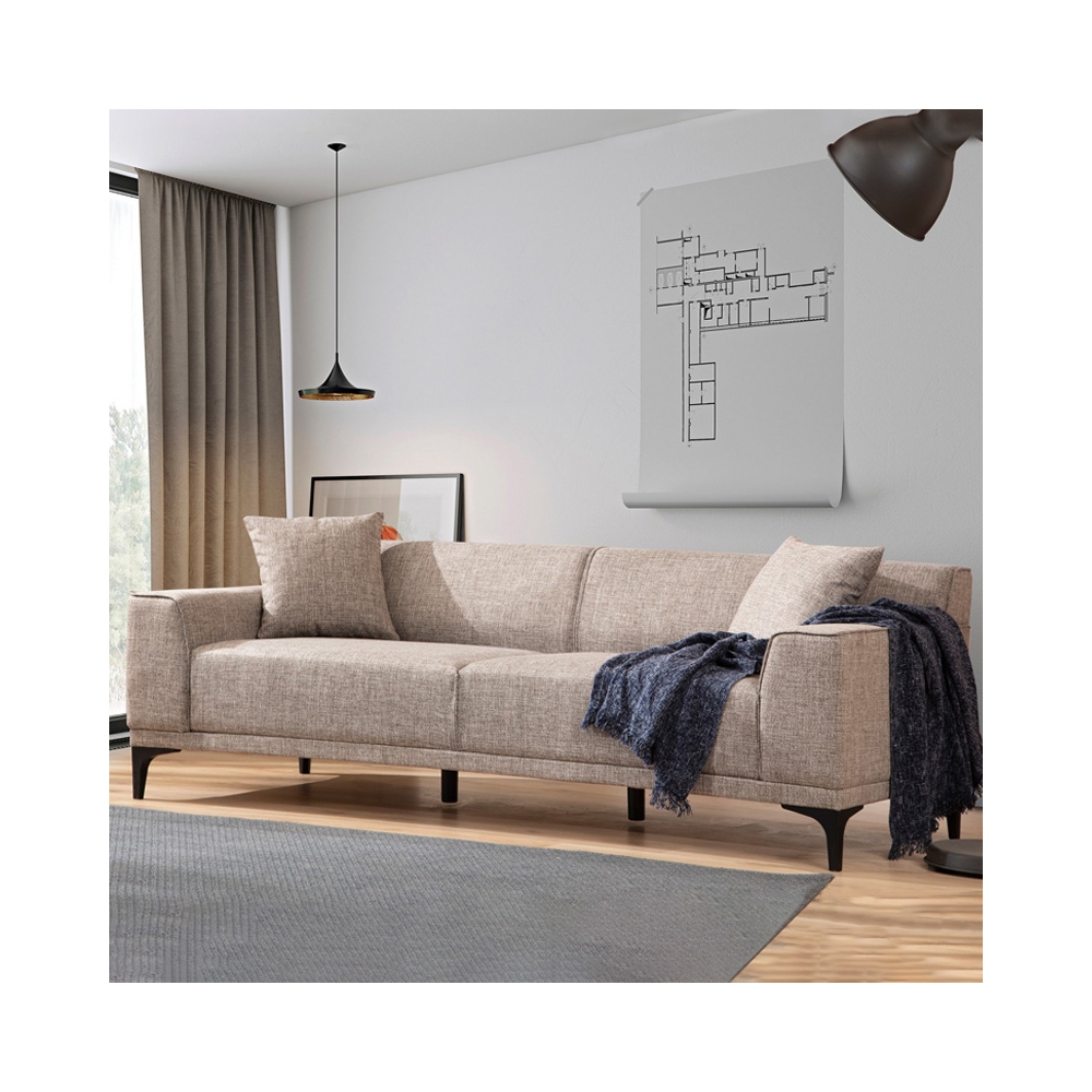 Καναπές 3θέσιος PWF-0566 pakoworld ύφασμα μπεζ-καφέ 212x69x86εκ