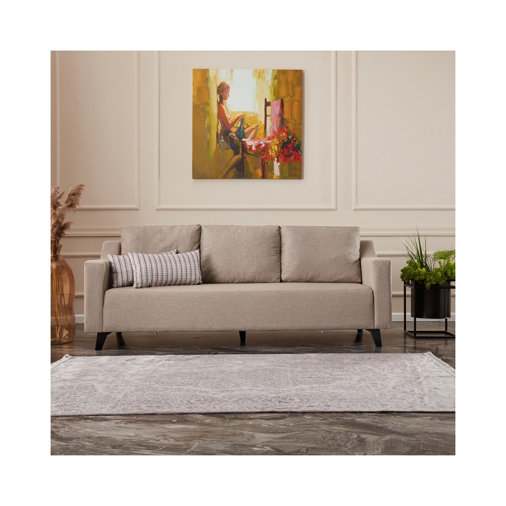 Τεχνικά χαρακτηριστικά: - Εσωτερικός σκελετός: Κατασκευασμένος από ενισχυμένο ξύλο οξιά. - Foam: 30 DNS + 28 DNS για την πλάτη - Επένδυση με ύφασμα cotton 50% + polyester 50% ιδανικό για εύκολο καθάρισμα (Easy-cleanable fabric) - Ρίχνοντας τη πλάτη με μία κίνηση, μετατρέπεται σε κρεβάτι. - Στήριξη σε ανθεκτικά, κομψά ξύλινα πόδια σε μαύρο χρώμα.