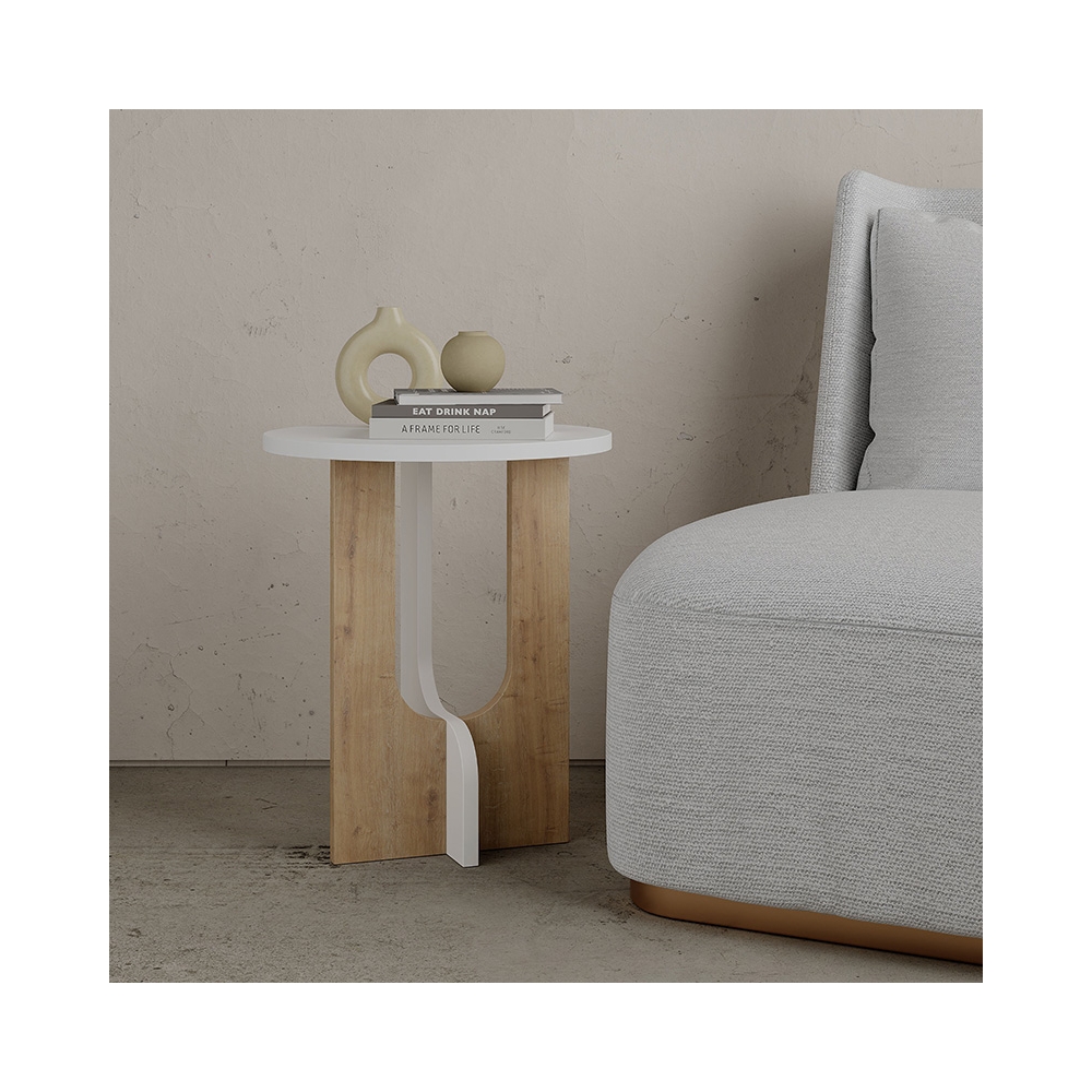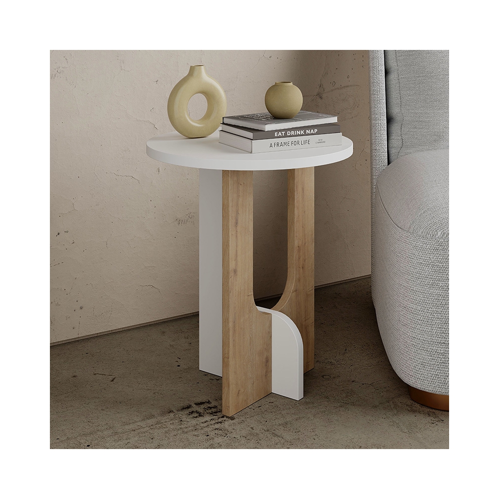 Βοηθητικό τραπέζι Luna pakoworld λευκό-φυσικό Φ40x47 εκ