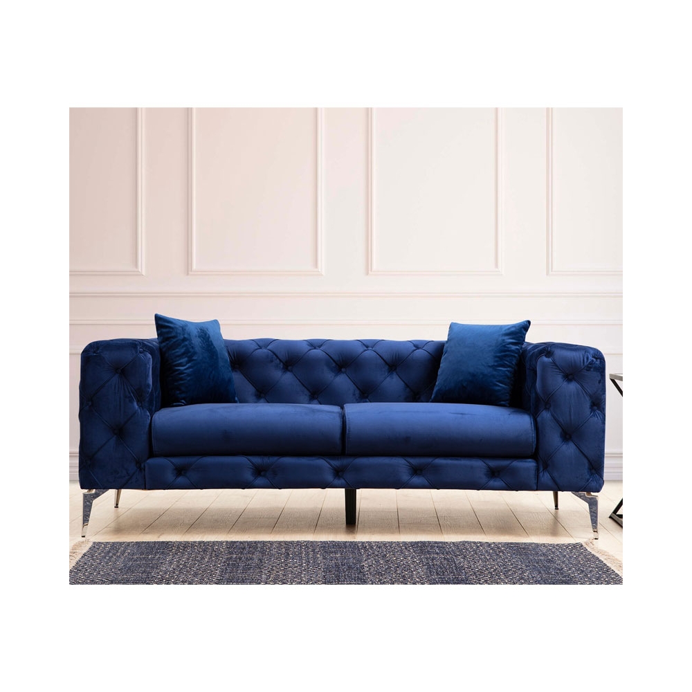 Τεχνικά χαρακτηριστικά: - Εσωτερικός σκελετός: Κατασκευασμένος από ενισχυμένο ξύλο οξιάς και μοριοσανίδα με επένδυση μελαμίνης. - Foam: 28 και 24 DNS για το κάθισμα και 24 DNS για την πλάτη. - Επένδυση με ύφασμα 100% polyester υψηλής ποιότητας το οποίο είναι ιδανικό για στεγνό καθάρισμα (Dry-cleanable fabric). - Τα μαξιλάρια του καθίσματος (πάχος 15 εκ) είναι αποσπώμενα ενώ της πλάτης είναι σταθερά. - Φέρει δύο διακοσμητικά μαξιλάρια διαστάσεων 45x45 εκ - Φέρει πόδια από μέταλλο σε ασημί χρώμα
