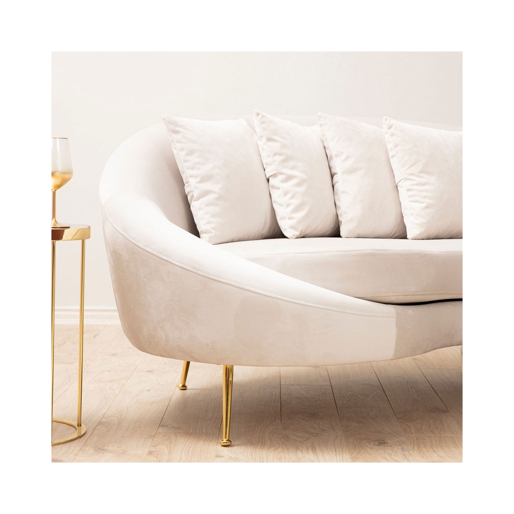 Τεχνικά χαρακτηριστικά: - Εσωτερικός σκελετός: Κατασκευασμένος από ενισχυμένο ξύλο οξιά. - Foam: 28 DNS + 24 DNS για την πλάτη - Επένδυση με ύφασμα polyester 100% ιδανικό για εύκολο καθάρισμα (Dry -cleanable fabric) - Φέρει δύο διακοσμητικά μαξιλάρια διαστάσεων 45x45 εκ - Στήριξη σε ανθεκτικά, κομψά μεταλικά πόδια σε χρυσό χρώμα