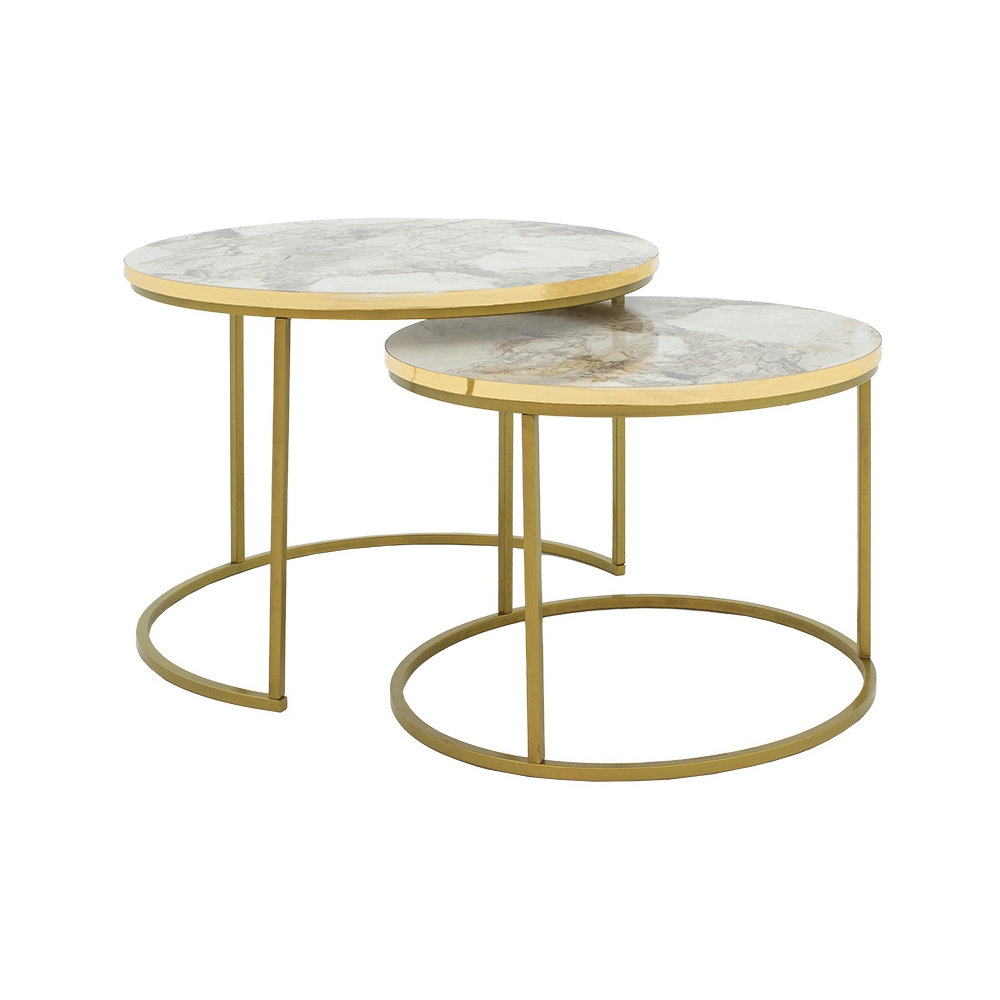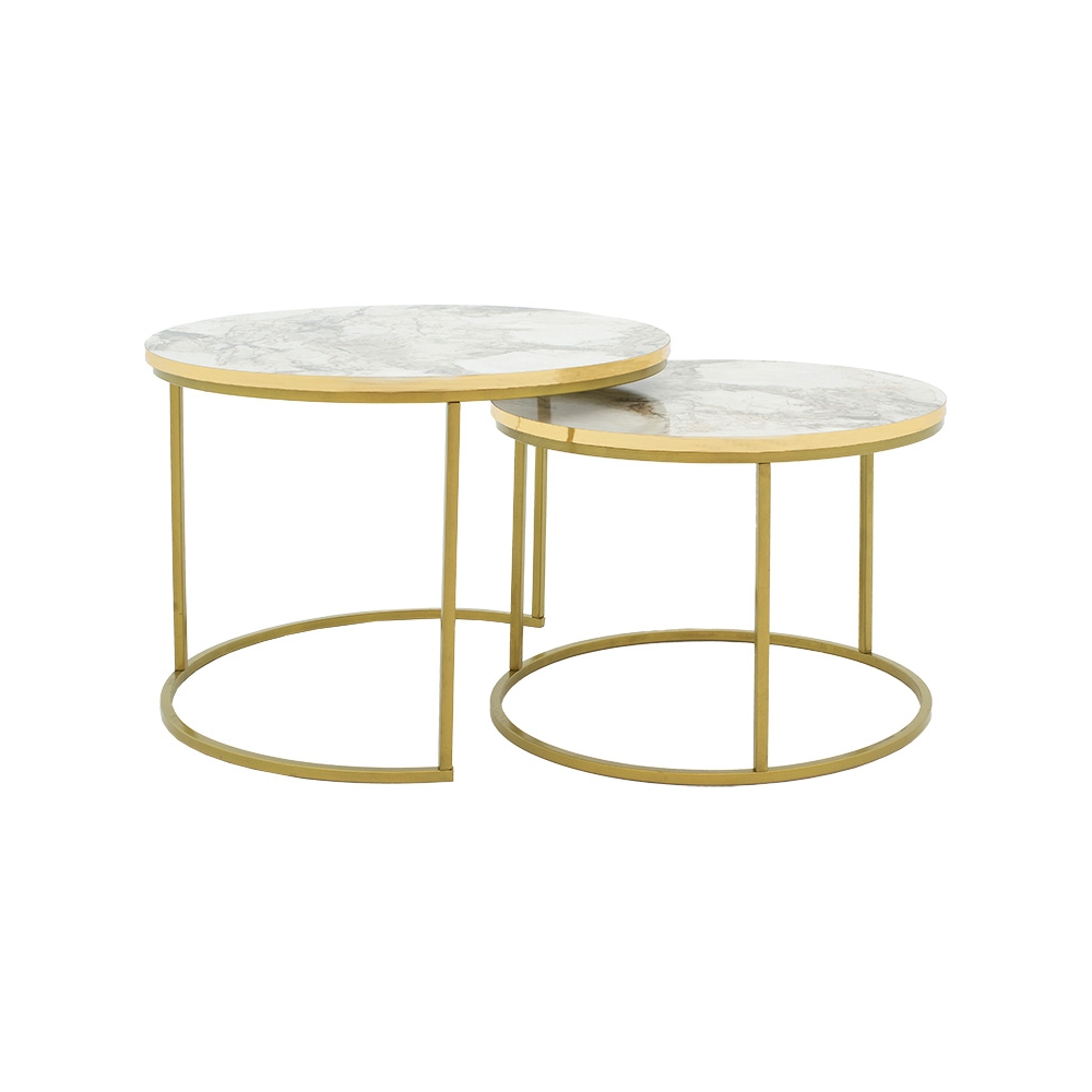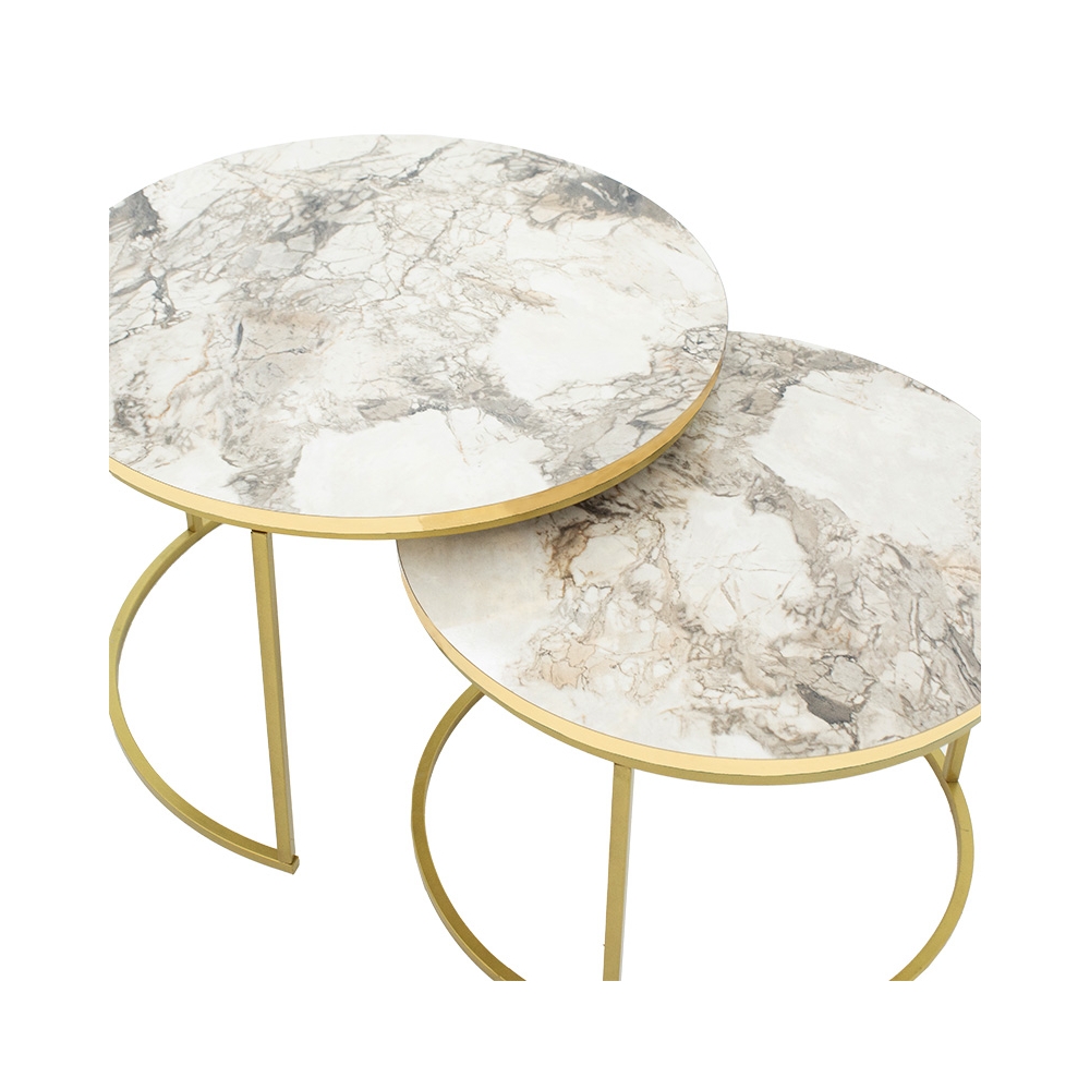 Τραπέζια σαλονιού October pakoworld σετ 2τεμ λευκό γκρι μάρμαρου-χρυσό ματ