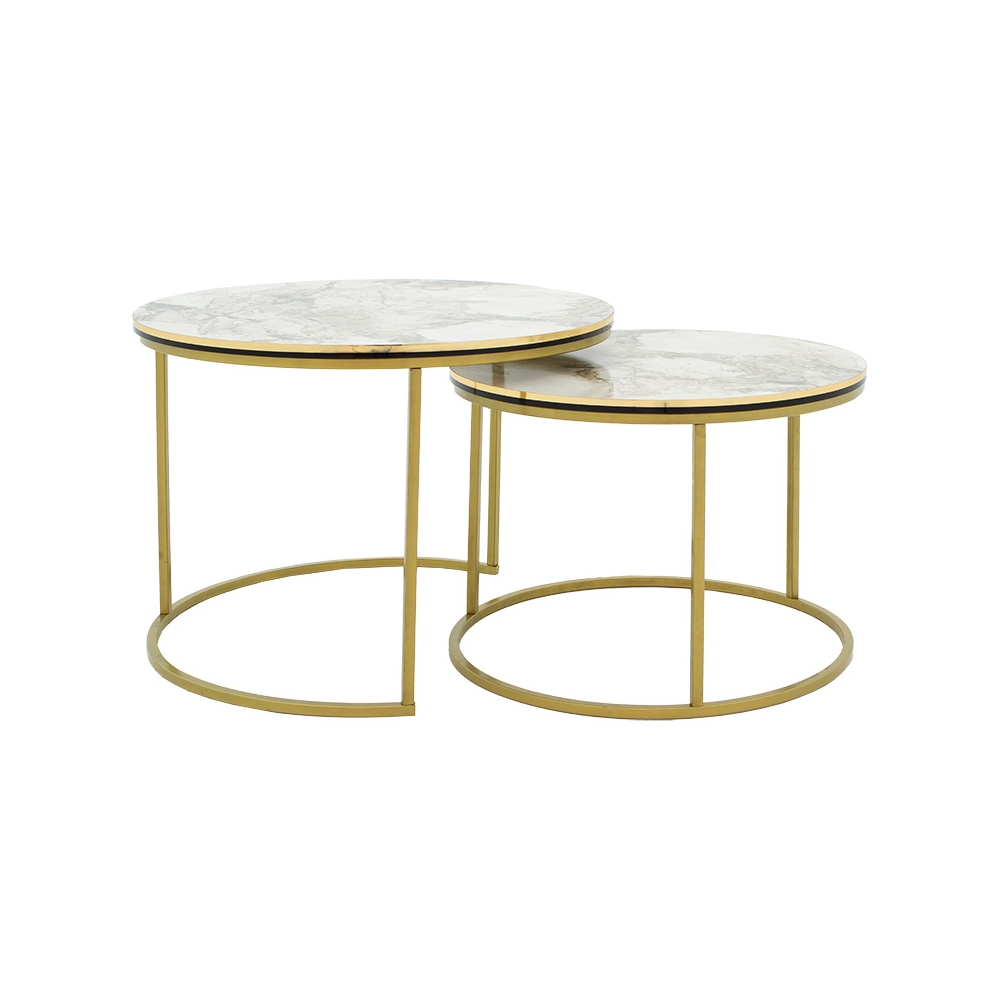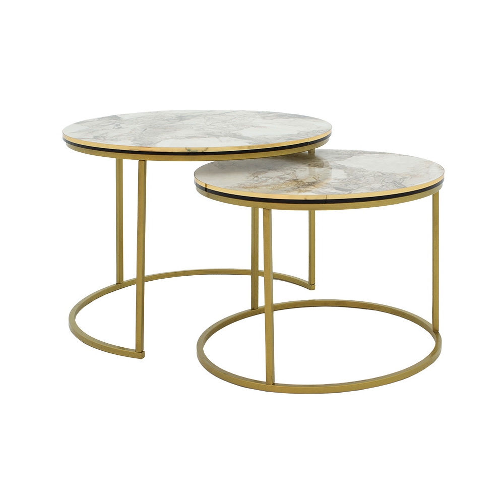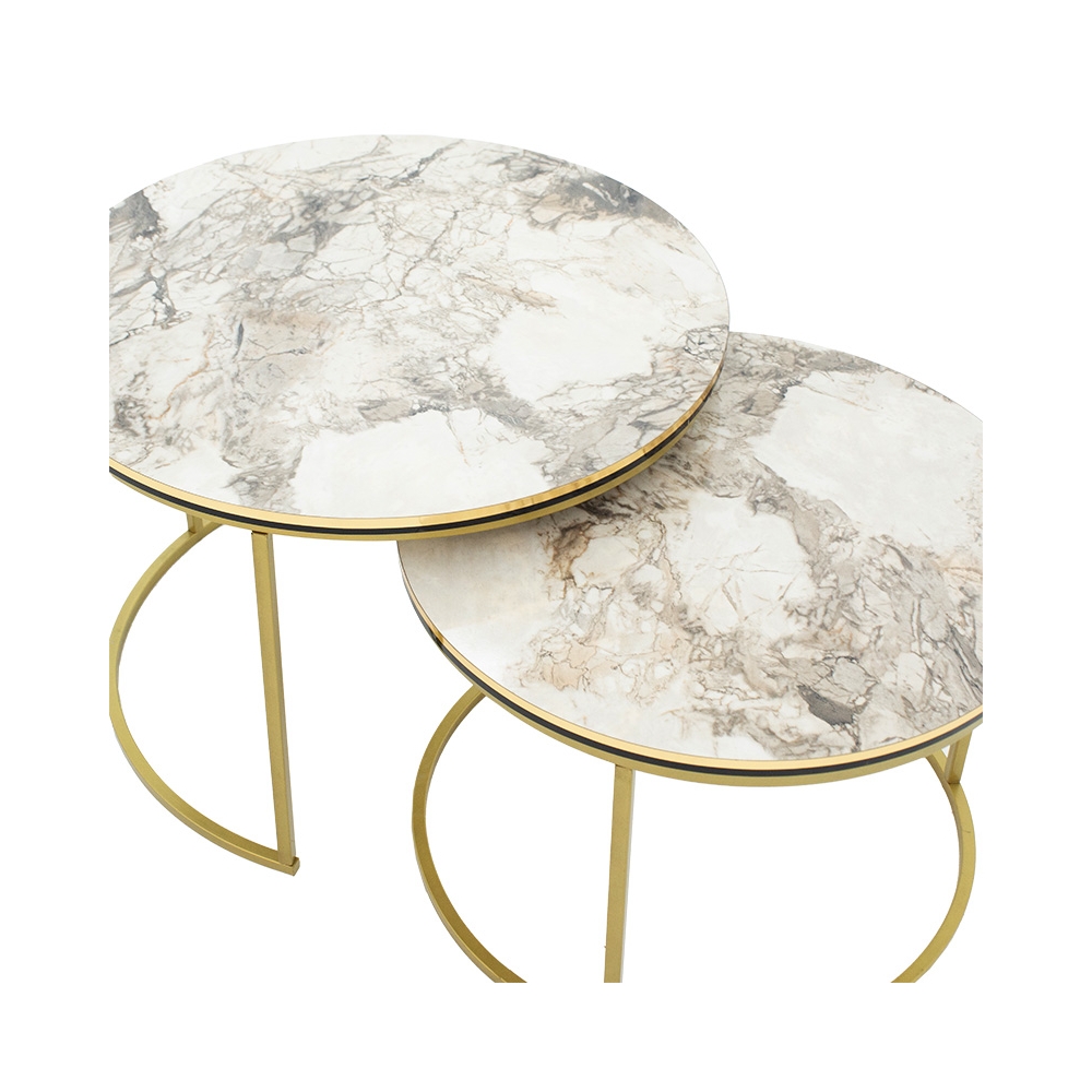 Τραπέζια σαλονιού October pakoworld σετ 2τεμ λευκό μαύρο μαρμάρου-χρυσό ματ