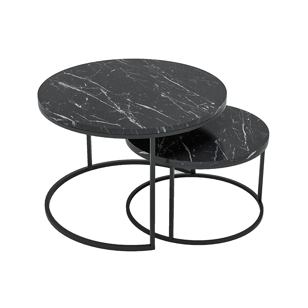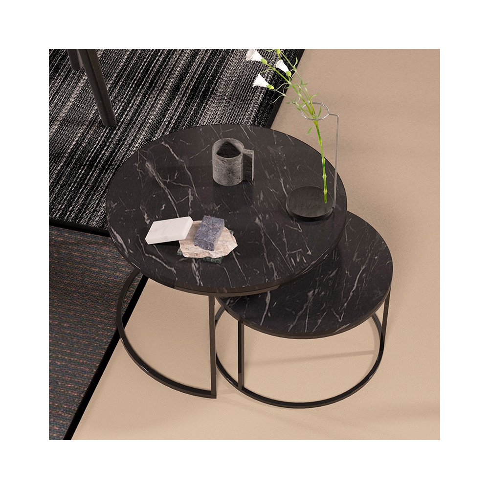Τραπέζια σαλονιού October pakoworld σετ 2τεμ μαύρο μαρμάρου-μαύρο