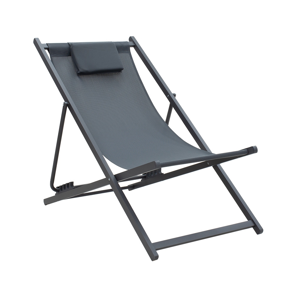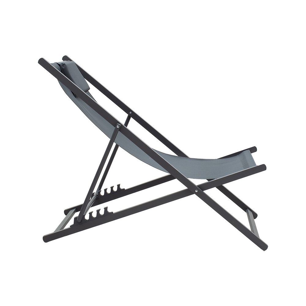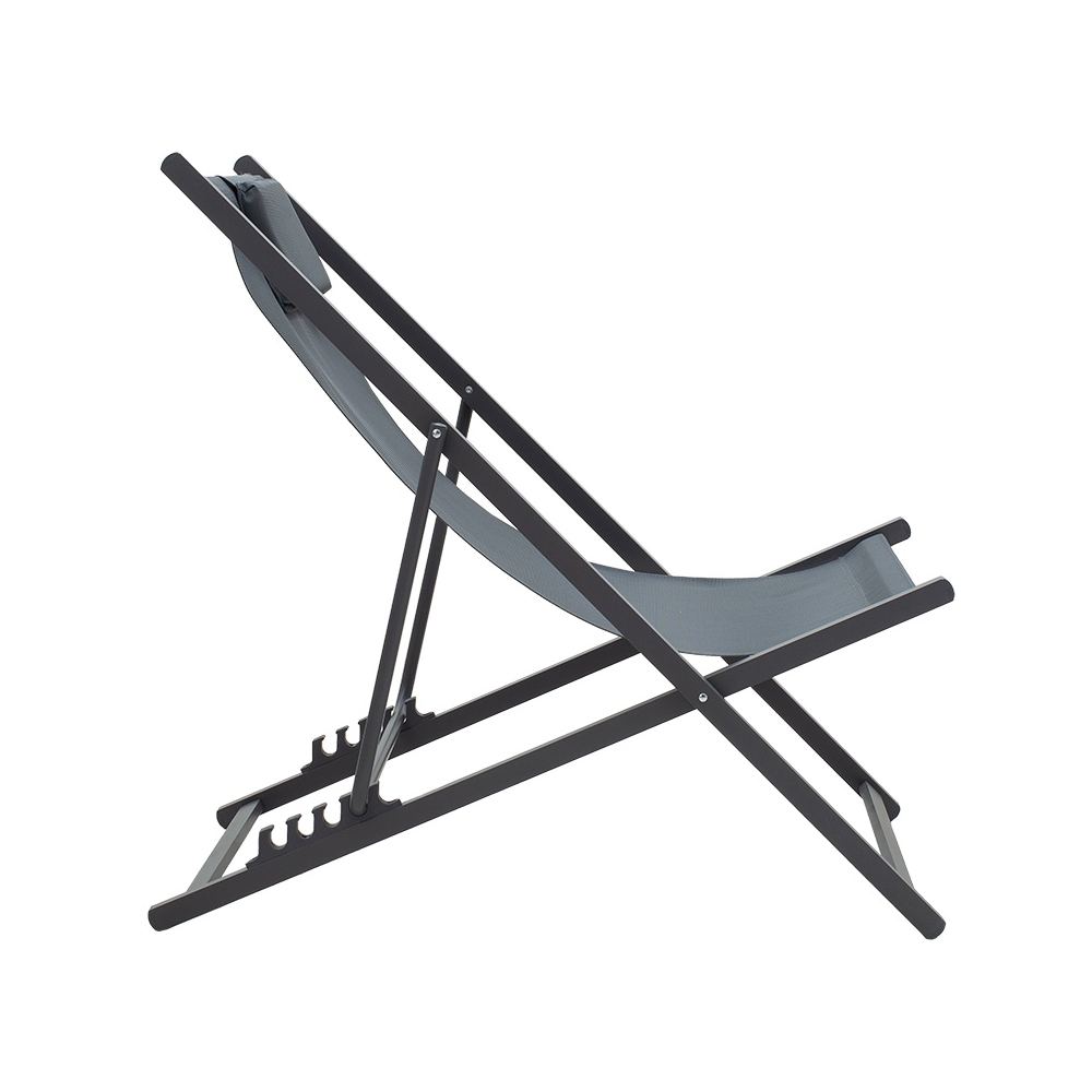 Τεχνικά χαρακτηριστικά: * Σταθερός σκελετός από υψηλής ποιότητας αλουμίνιο με μεταλλική υποστήριξη εποδειδικής βαφής ανθρακί χρώματος. * Επένδυση υφάσματος textinene ανθρακί χρώματος. Το textilene 2x1 530gr είναι ύφασμα μεγάλης αντοχής στην ηλιακή ακτινοβολία UV και την υγρασία, ενώ παράλληλα αφήνει το δέρμα να "αναπνέει" δημιουργώντας έτσι άνεση στην έδραση. * Διαθέτει πέντε θέσεις ανάκλισης: Το προσκέφαλο ανακλίνεται σε 5 θέσεις από 81εκ έως 92εκ.