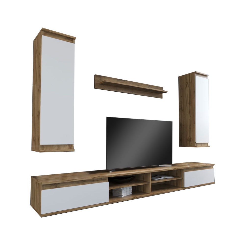 Σύνθετο σαλονιού Sandro pakoworld καρύδι-λευκό 220x37x160εκ