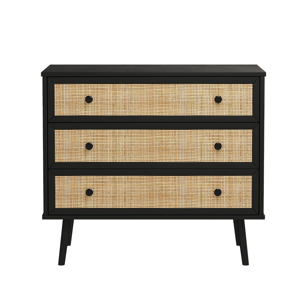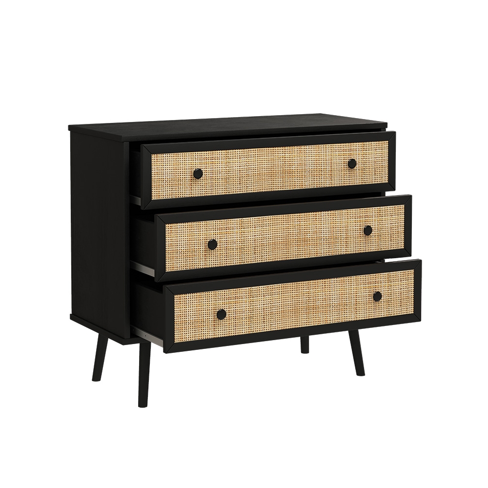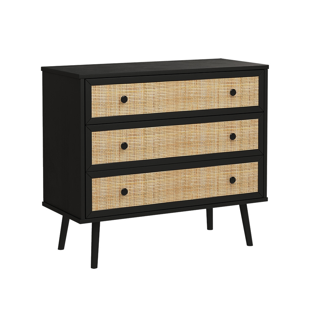 Συρταριέρα Oslo pakoworld 3ων συρταριών μαύρο-φυσικό 90x39x79εκ