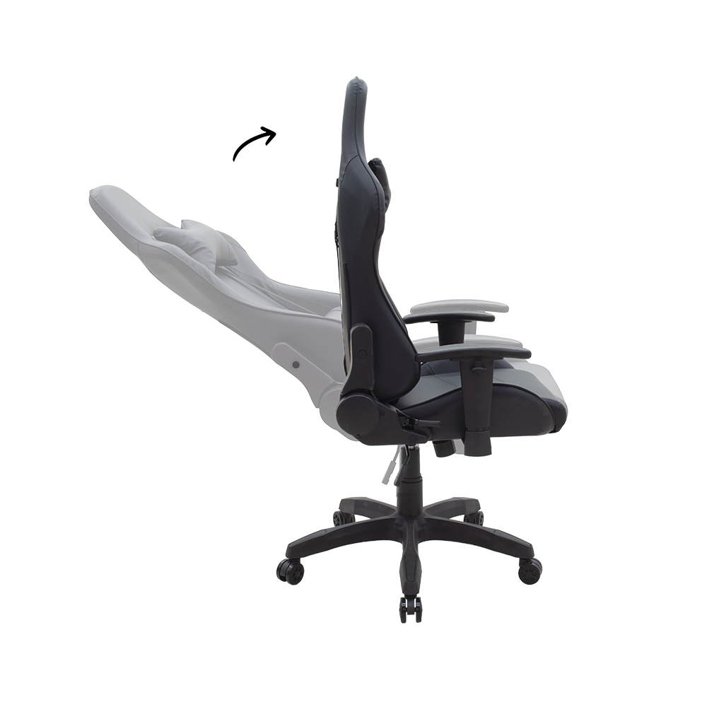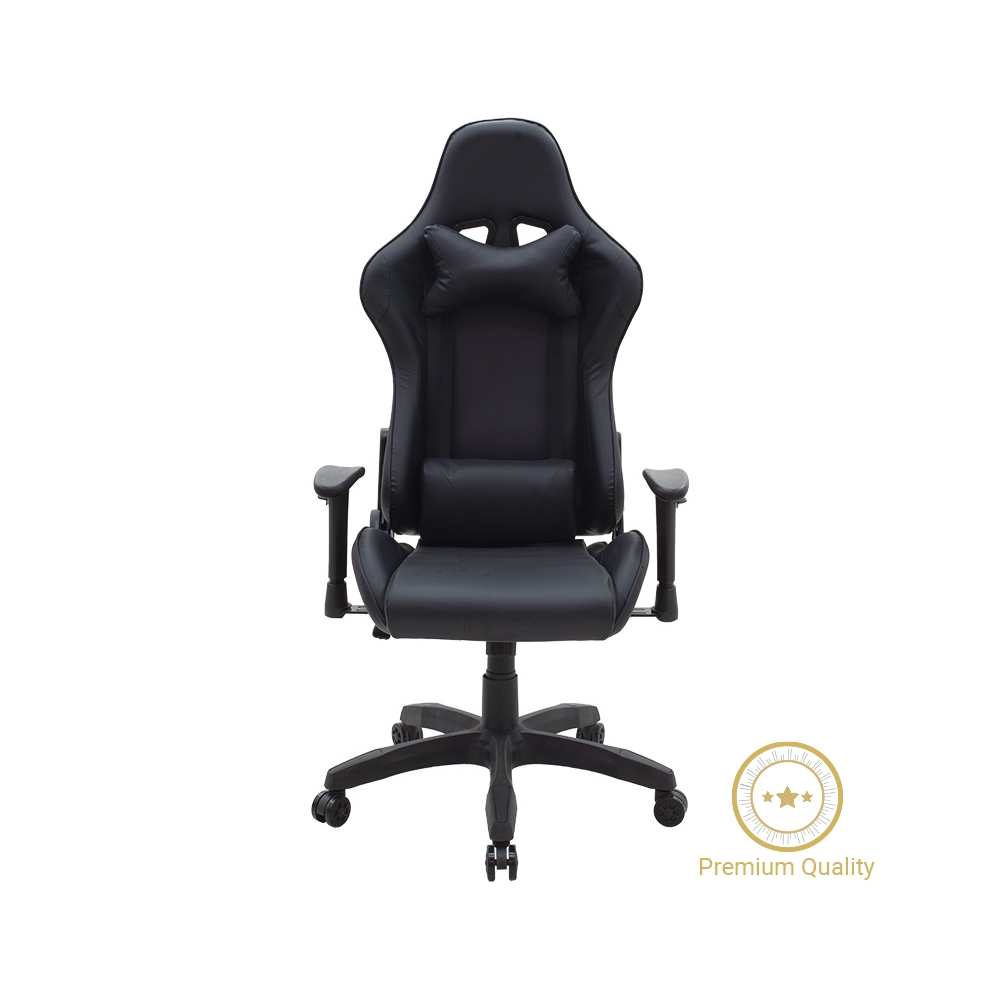 Τεχνικές προδιαγραφές: * Μηχανισμός Butterfly / Ρυθμιζόμενη πλάτη: Ώστε το κάθισμα να μπορεί να κλειδώσει σε οποιαδήποτε θέση επιθυμείτε προσφέροντας σταθερή στήριξη της μέσης και της σπονδυλικής στήλης. Η δυνατότητα κλίσης και σταθεροποίησης της πλάτης έως και 180 μοίρες, σας προσκαλεί να ξεκλέψετε κάποιες μικρές – στιγμές ξεκούρασης ακόμη και στο χώρο του γραφείου, για να συνεχίσετε ανανεωμένοι λίγο αργότερα. * Μηχανισμός Knee Tilt: O μηχανισμός ανάκλησης ρυθμίζεται σε σχέση με το βάρος του χρήστη και μπορεί να ασφαλίσει σε διαφορετικές θέσεις. * Ρυθμιζόμενο ύψος: Ώστε να προσαρμόσετε και να “κλειδώσετε” το κάθισμα στη κατάλληλη εργονομική θέση που ταιριάζει στο προσωπικό σας ύψος. * Ανθεκτικός σκελετός & εργονομία: Από ενισχυμένο πολυκαρβουνικό για υψηλές επιδόσεις στο χρόνο. * Η πεντακτινωτή βάση είναι πολυπροπυλενίου σε μαύρο χρώμα * Εσωτερικά φέρει 24D Molded Foam * Επένδυση τεχνόδερμα: Επένδυση με τεχνόδερμα υψηλών αντοχών που παρέχει ανθεκτικότητα και εύκολο καθάρισμα. * Ρυθμιζόμενα μπράτσα 2D: Με δυνατότητα ανύψωσης σε τρεις διαφορετικές θέσεις για την ανακούφιση των καρπών ανάλογα με τις απαιτήσεις της εργασίας σας αλλά και του gaming. * Ρυθμιζόμενο μαξιλάρι μέσης & αυχένα: Που υποστηρίζει την πολύωρη χρήση του καθίσματος, εξασφαλίζοντας την ξεκούραση του χρήστη. * Μοντέρνος σχεδιασμός: Που ξεχωρίζει για το Design και τον δυναμικό χρωματικό συνδυασμό του μαύρου * Ενισχυμένη μπουκάλα στήριξης Class 3.