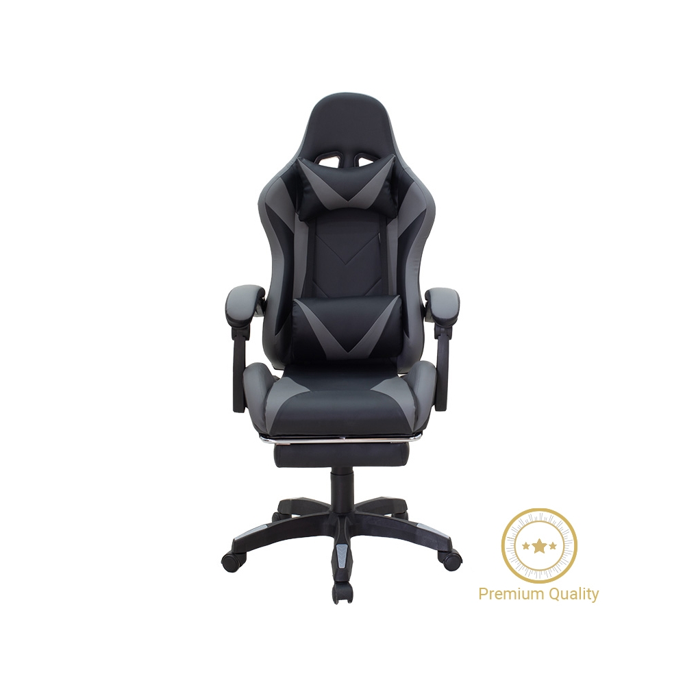 Καρέκλα γραφείου gaming με υποπόδιο Moza pakoworld PU μαύρο-γκρι