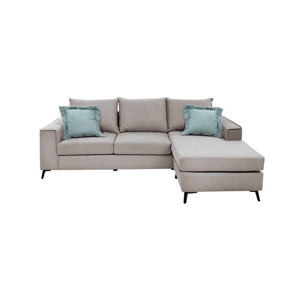 Τεχνικά χαρακτηριστικά: Κατασκευή από: - Σκελετό μοριοσανίδας, ξύλο λεύκας και επένδυση MDF + αφρολέξ - Μαξιλάρι καθίσματος αφρολέξ 400άρι plus, με διπλή βάτα ενισχυμένη με ελαστικές ίνες και μαξιλάρι πλάτης από 100% καθαρή σιλικόνη. - Ποδαρικό από υψηλής ποιότητας μέταλλο σε μαύρο χρώμα. - Φέρει επένδυση υφάσματος Easy Clean (90% αδιάβροχο) εξαιρετικής ποιότητας και αντοχής. Όλα τα μαξιλάρια (πλάτης και έδρας) έχουν φερμουάρ και μπορούν να πληθούν στους 30 βαθμούς. -Χρώμα καναπέ και μαξιλαριών πλάτης: Elephant - Φέρει δύο διακοσμητικά μαξιλαράκια σε Ciel χρώμα.