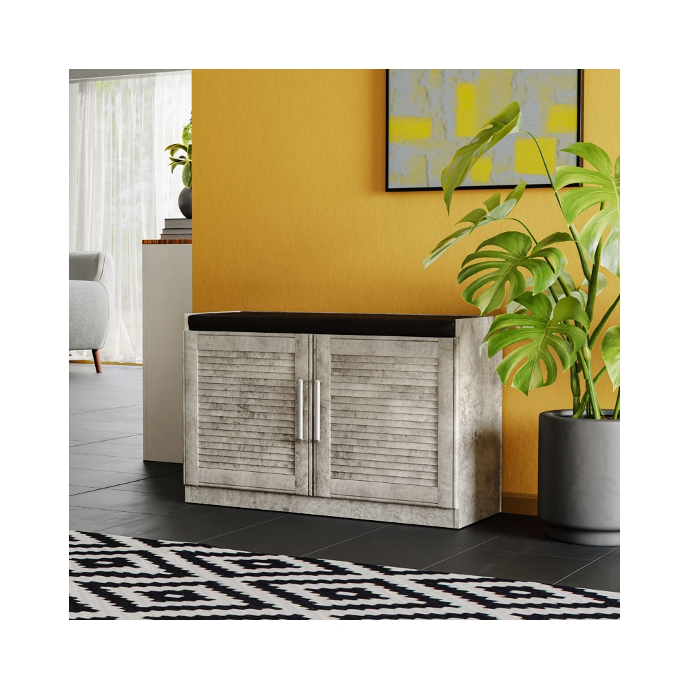 Παπουτσοθήκη-Σκαμπό Crispy pakoworld 9 ζεύγων χρώμα antique ανθρακί με μαξιλάρι 94x34,5x60εκ