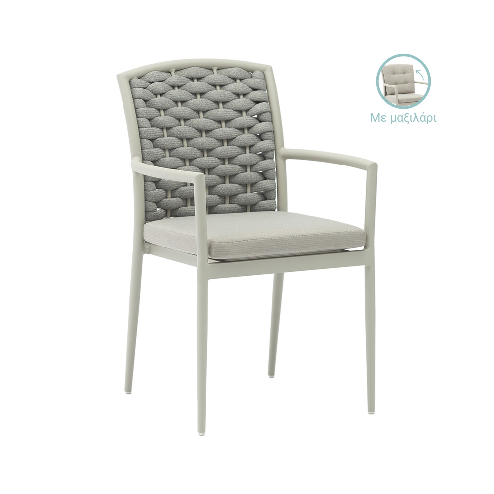 Πολυθρόνα κήπου Moritz pakoworld αλουμίνιο γκρι σχοινί-μαξιλάρι μπεζ