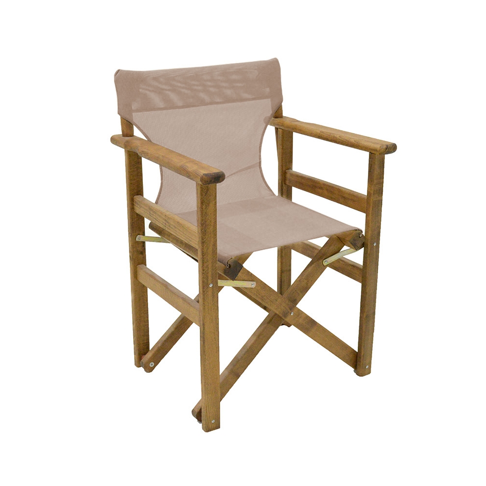 Τεχνικά χαρακτηριστικά: * Κατασκευασμένη από ενισχυμένο ξύλινο σκελετό αρίστης ποιότητας από ξύλο φουρνιστής οξιάς σε χρώμα καρυδί και με βερνίκι εμποτισμού για μεγαλύτερη προστασία. * Διαθέτει πανί διάτρητο χρώματος taype. * Το κάθισμα είναι πτυσσόμενο για εύκολη αποθήκευση όταν δεν χρησιμοποιείται. * Κλασσικός σχεδιασμός με υψηλές αντοχές στον χρόνο και την υγρασία. Ενδείκνυται για εξωτερικούς και επαγγελματικούς χώρους. * Βάρος: 7,5 κιλά