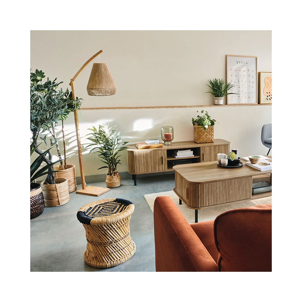 • Μπαμπού: Το μπαμπού είναι ένα φυσικό υλικό που προέρχεται από τους θάμνους μπαμπού της οικογένειας Poaceae. Διαθέτει φυσική εμφάνιση και υφή. Είναι ελαστικό υλικό και μπορεί να χρησιμοποιηθεί για διάφορες εφαρμογές όπως διακοσμητικά καλάθια, στολίδια και εξαρτήματα. Είναι ισχυρό, ανθεκτικό και βιώσιμο.