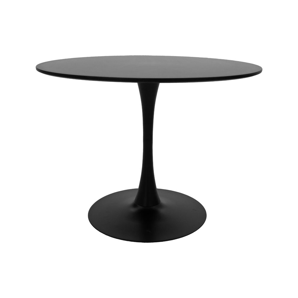 Στρόγγυλο τραπέζι Balou υψηλής αισθητικής και design, σε συνδυασμό μετάλλου στον σκελετό και μαύρο MDF στην επιφάνεια.