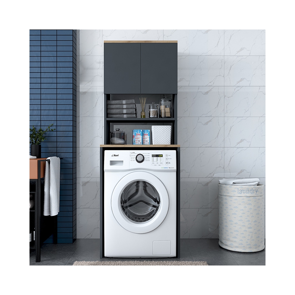 Αξιοποιώντας έξυπνα τον χώρο πάνω απο το πλυντήριο ρούχων συνδιάζοντας την αισθητική με την εργονομία.