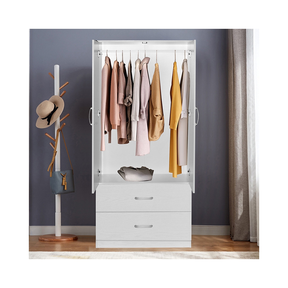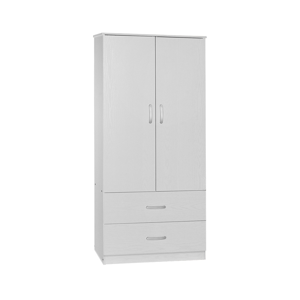 Ντουλάπα ρούχων δίφυλλη Zelia pakoworld με 2 συρτάρια χρώμα λευκό 79x42x180εκ