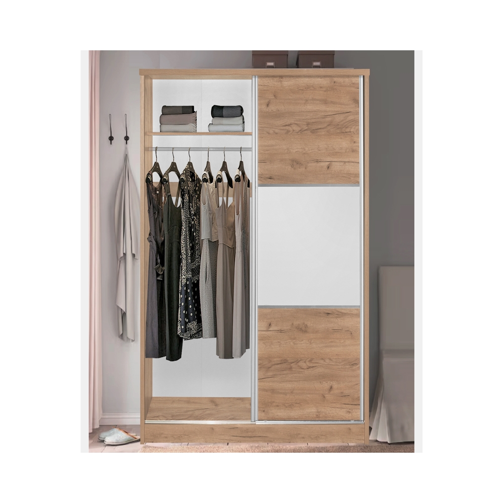 Ντουλάπα ρούχων Griffin pakoworld δίφυλλη με συρόμενες πόρτες χρώμα φυσικό 121x56.5x180.5εκ