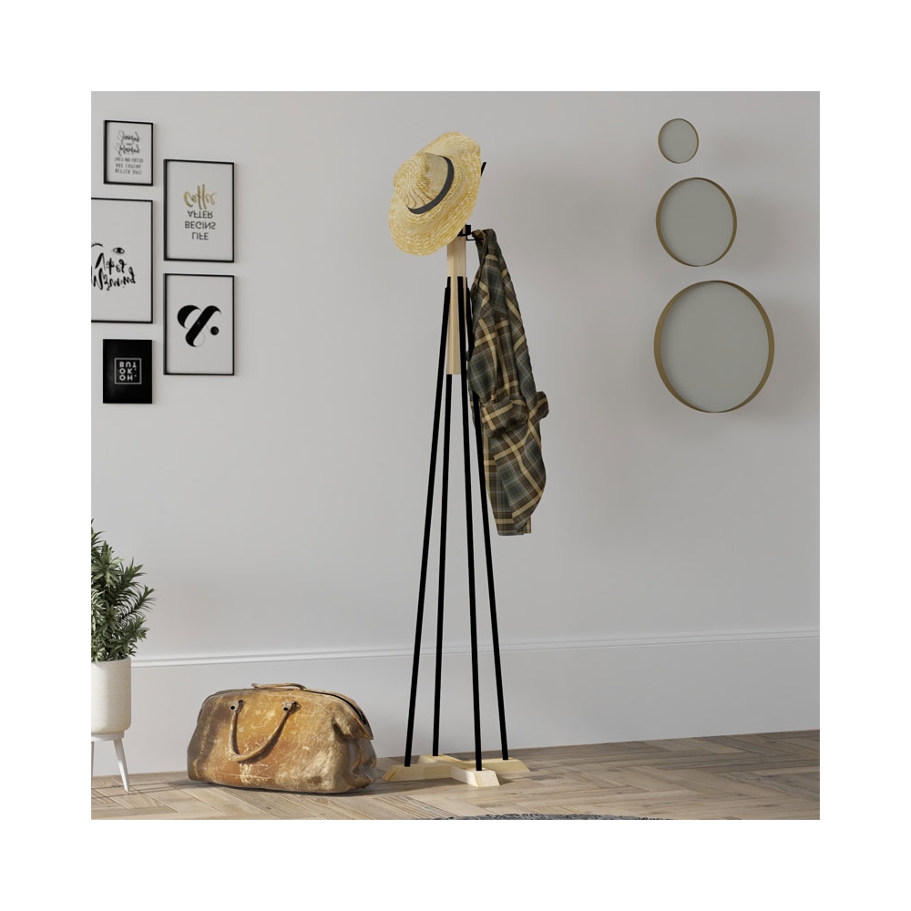 Μοντέρνος επιδαπέδιος καλόγερος σε νεανικό design και στυλ που θα ανανεώσει την είσοδο του σπιτιού σας. Ένα αναγκαίο έπιπλο για κάθε σπίτι και γραφείο στην φυσική απόχρωση του ξύλου για να φιλοξενήσει τις τσάντες και τα τζάκετ σας.