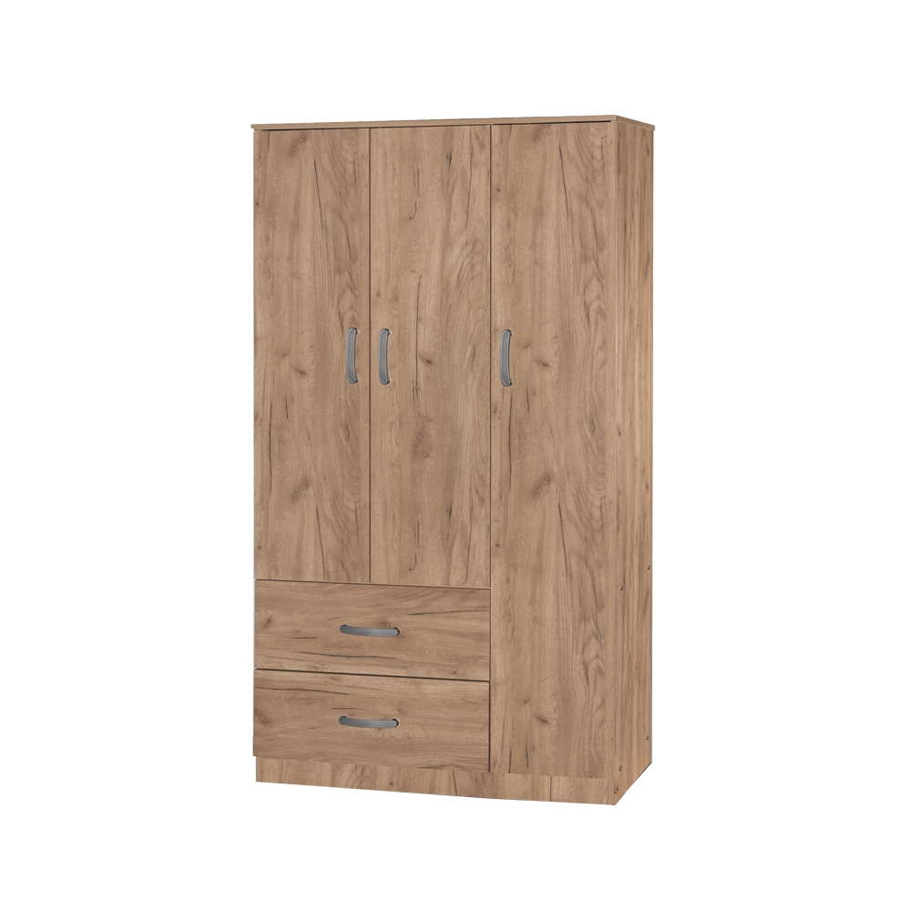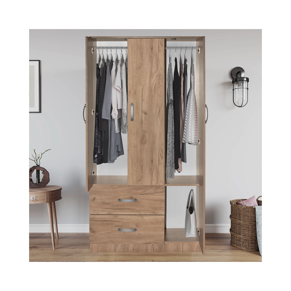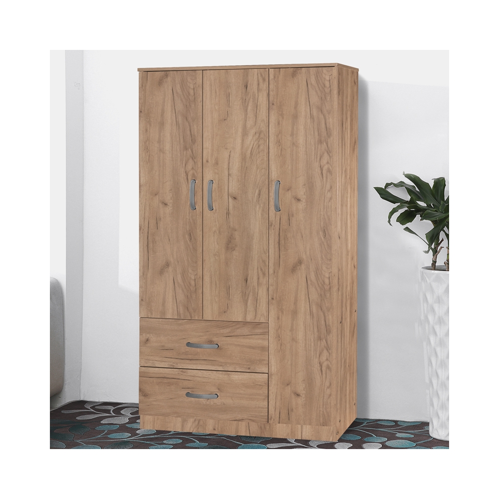 Ντουλάπα ρούχων τρίφυλλη Zelia pakoworld με 2 συρτάρια χρώμα φυσικό mo 90x42x180εκ