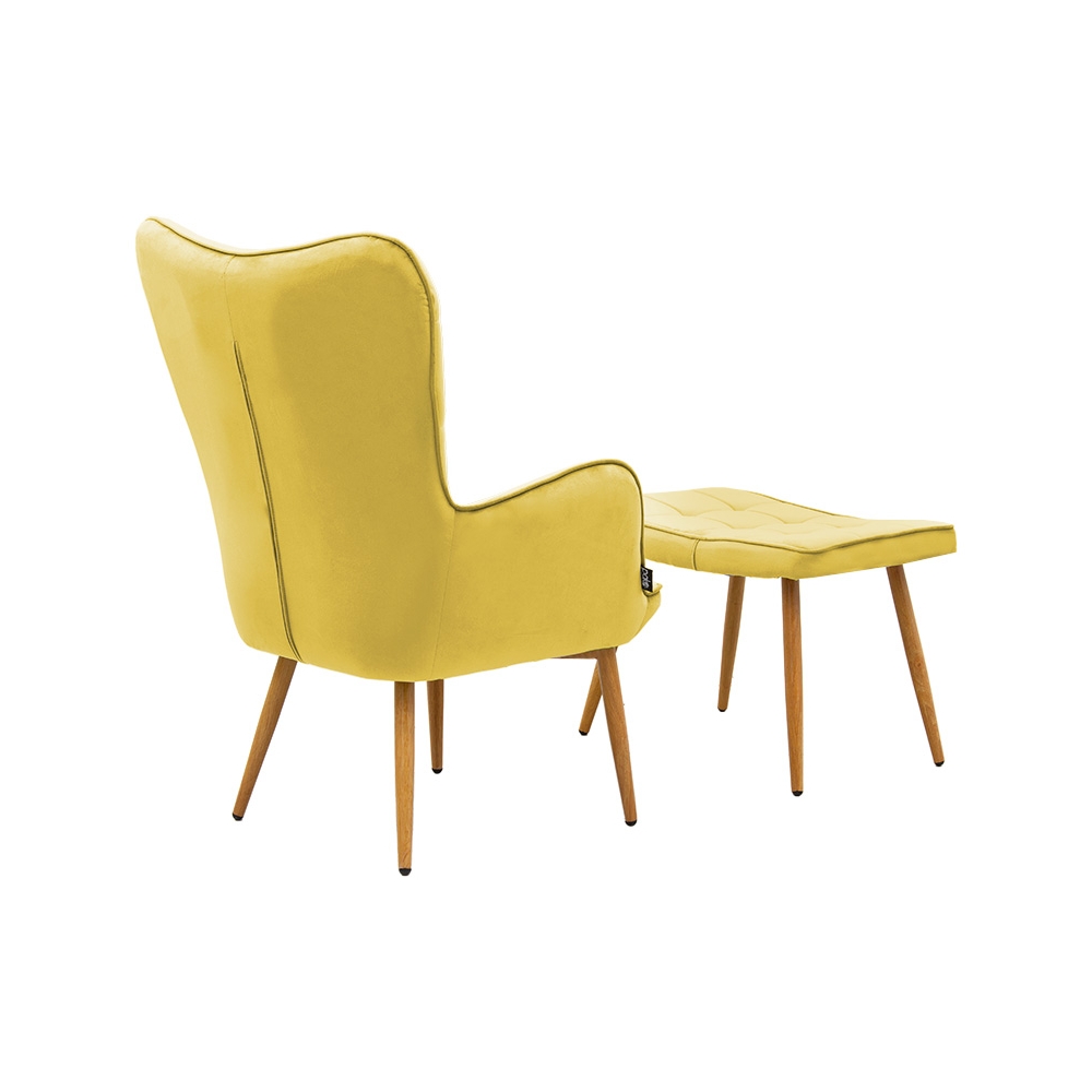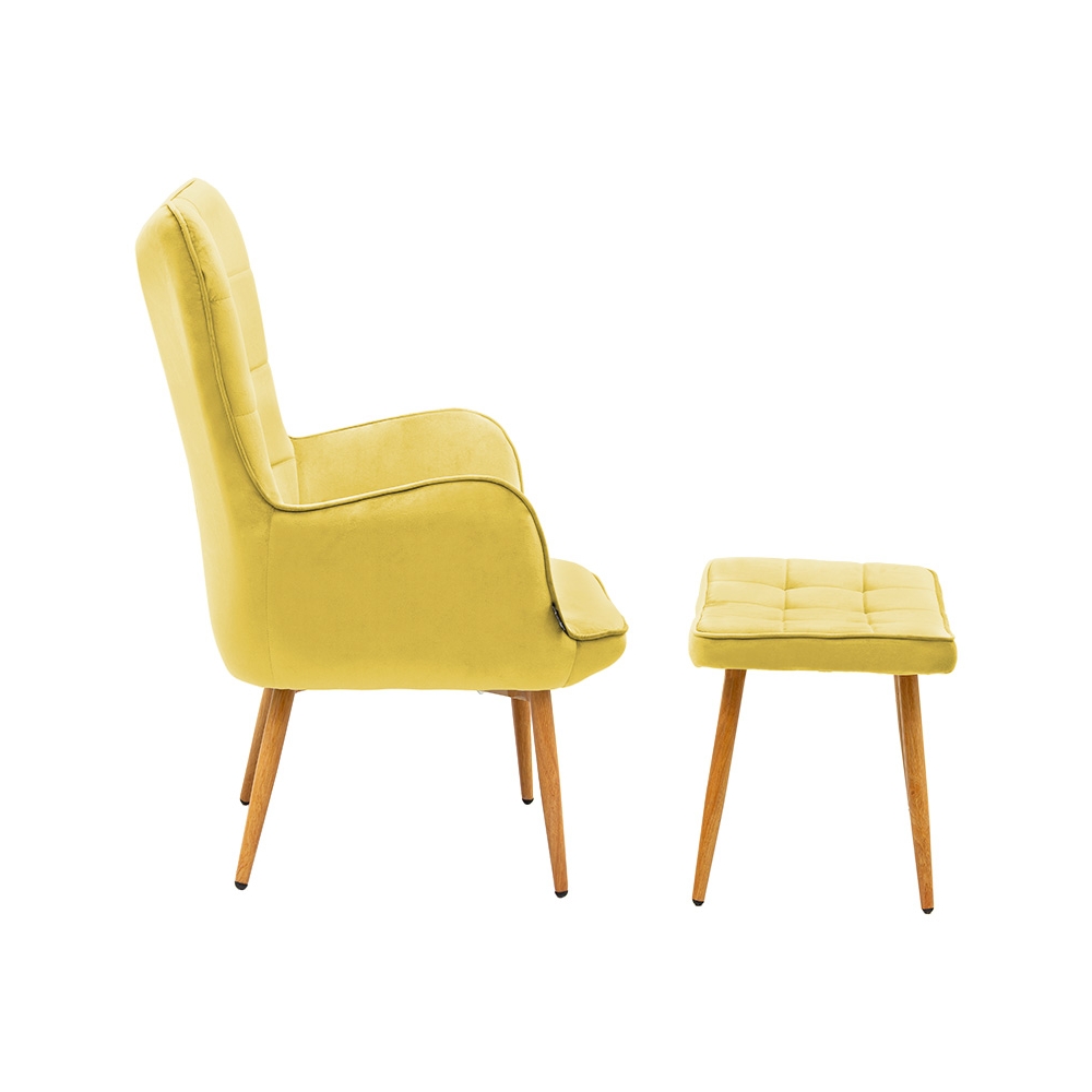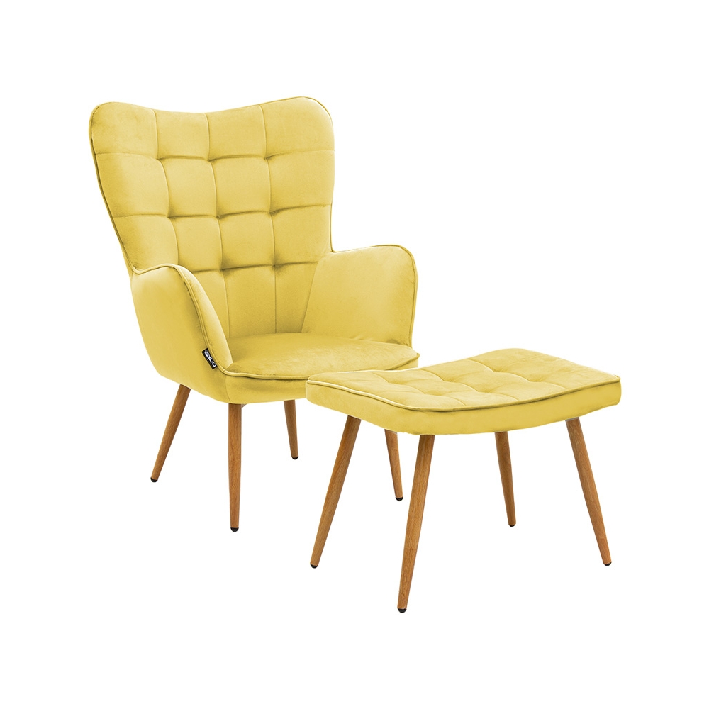 Πολυθρόνα Maddison με υποπόδιο-μαξιλάρι pakoworld βελούδο κίτρινο-φυσικό 68x72x98εκ.