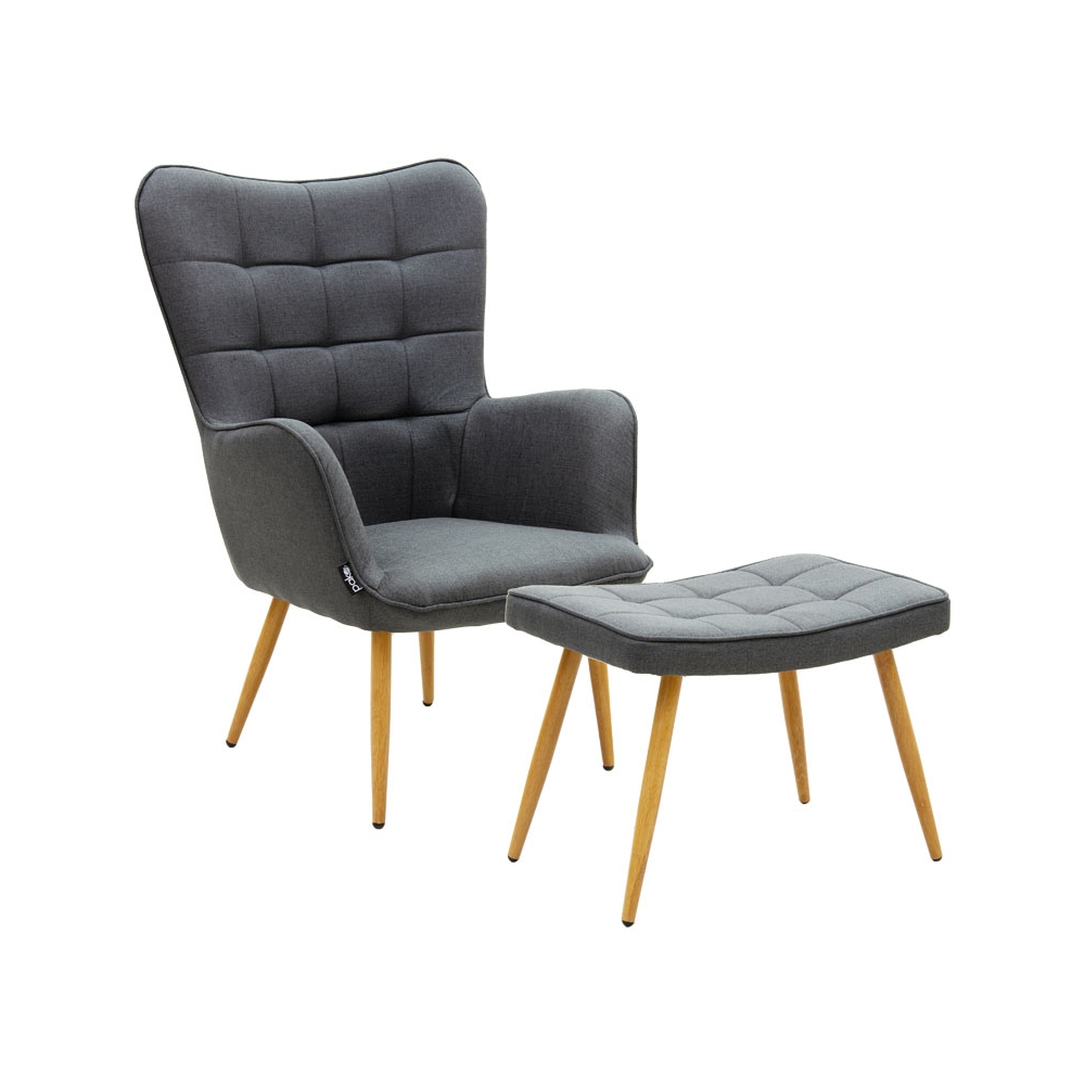 Πολυθρόνα Maddison με υποπόδιο-μαξιλάρι pakoworld ύφασμα ανθρακί-φυσικό 68x72x98εκ.