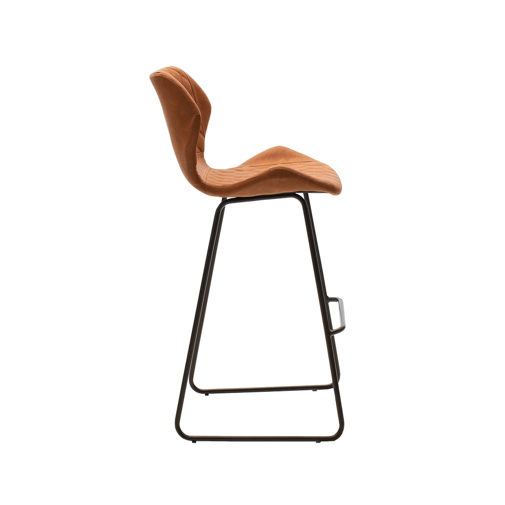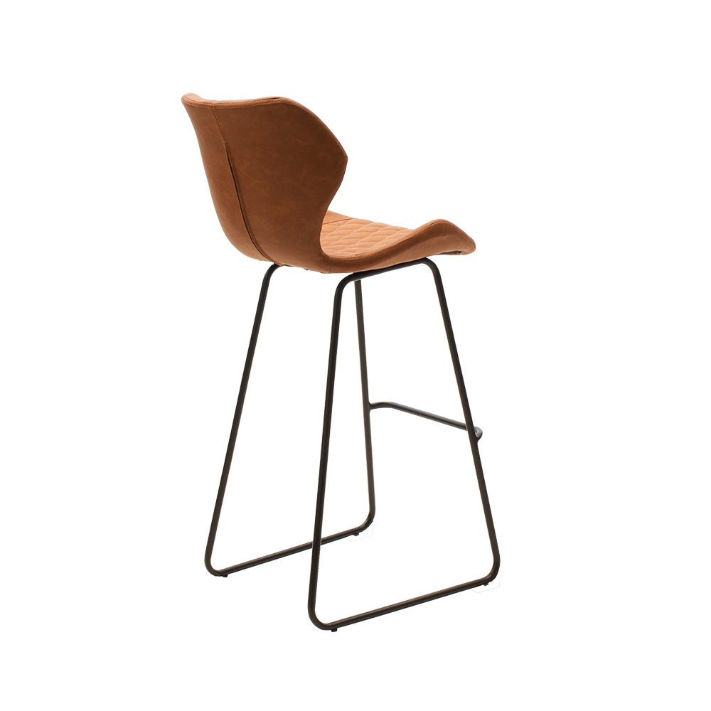 Σκαμπό μπαρ Theo pakoworld μεταλλικό μαύρο με PU antique καφέ ταμπά