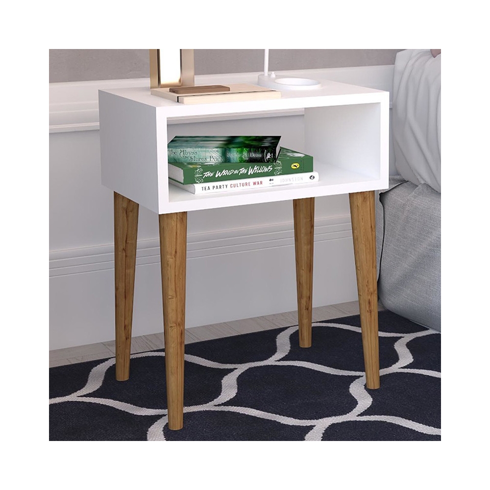 Κομοδίνο Hank pakoworld λευκό-καρυδί 45x30x60εκ