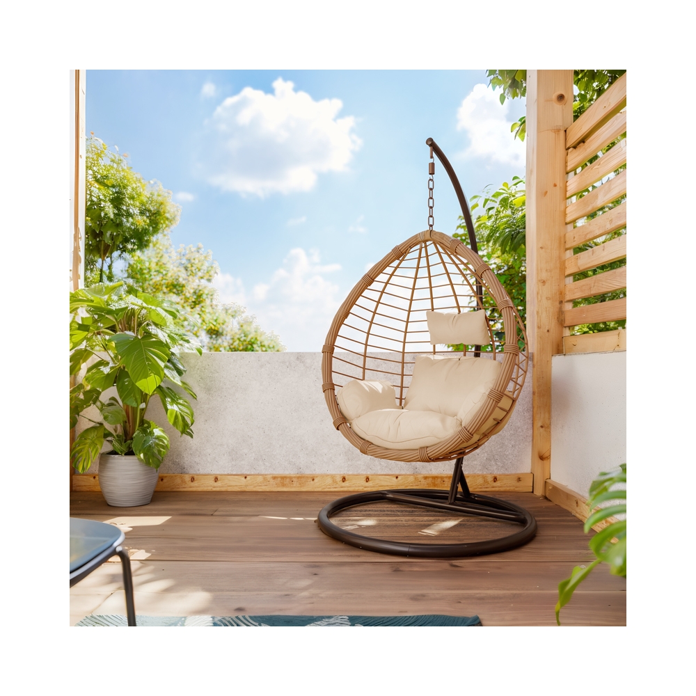 Κούνια Nadim pakoworld κρεμαστή μέταλλο καφέ -μαξιλάρι μπεζ-pe φυσικό