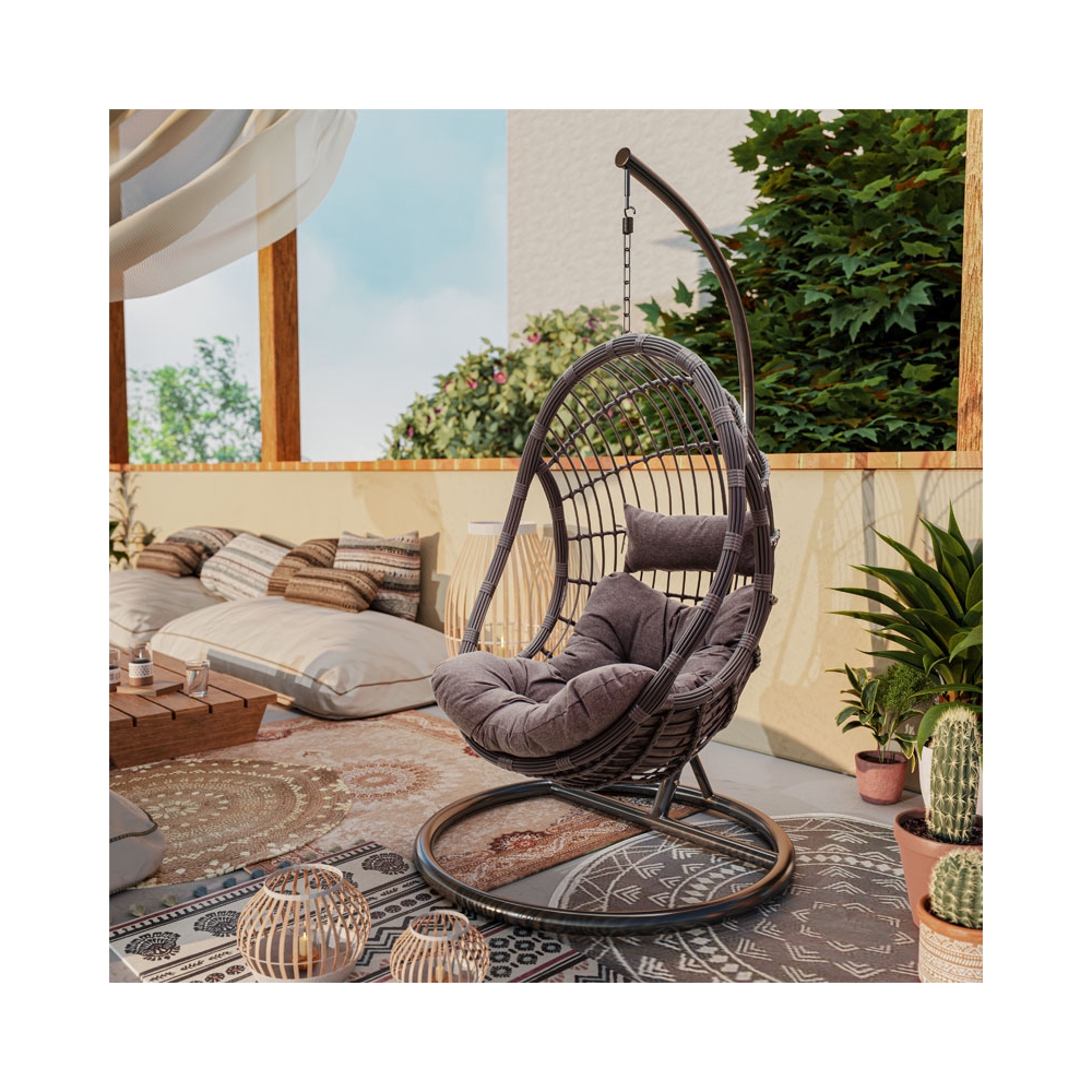 Κούνια Lacie pakoworld κρεμαστή pe μέταλλο ανθρακί-μαξιλάρι γκρι