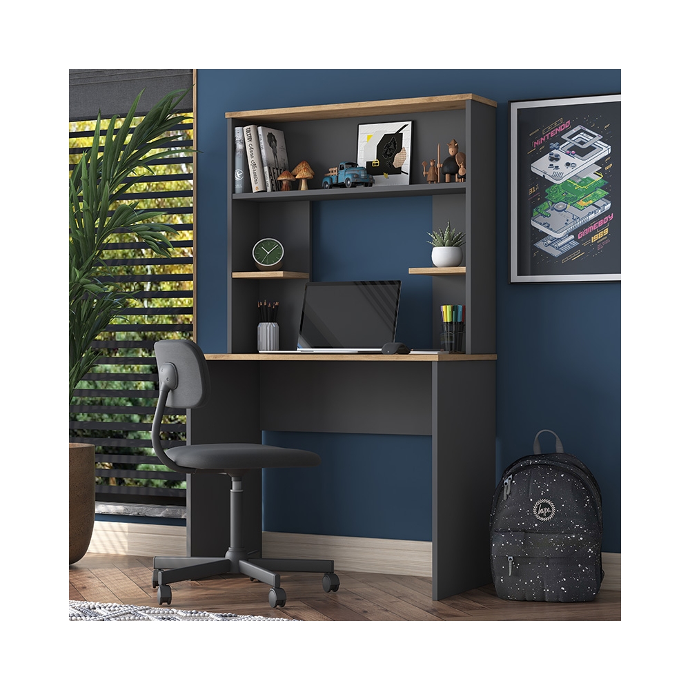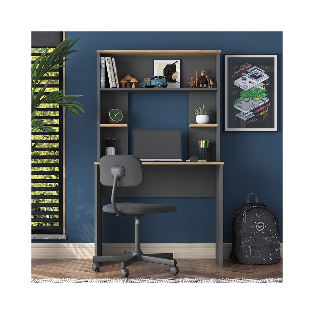Γραφείο με ραφιέρα Goldie pakoworld ανθρακί-φυσικό 90x45x155,60εκ