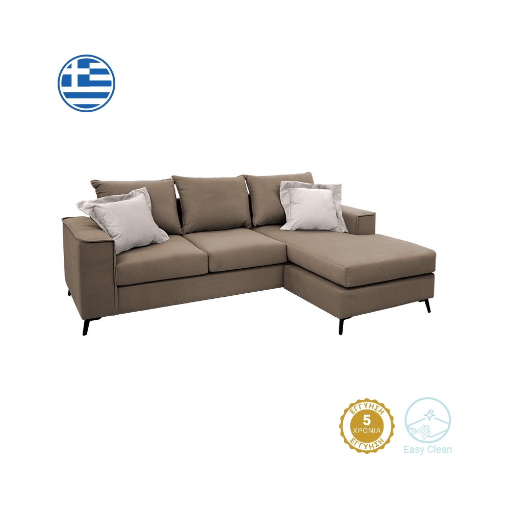 Γωνιακός καναπές Fabulous pakoworld αναστρέψιμος ύφασμα mocha-cream 240x165x95εκ