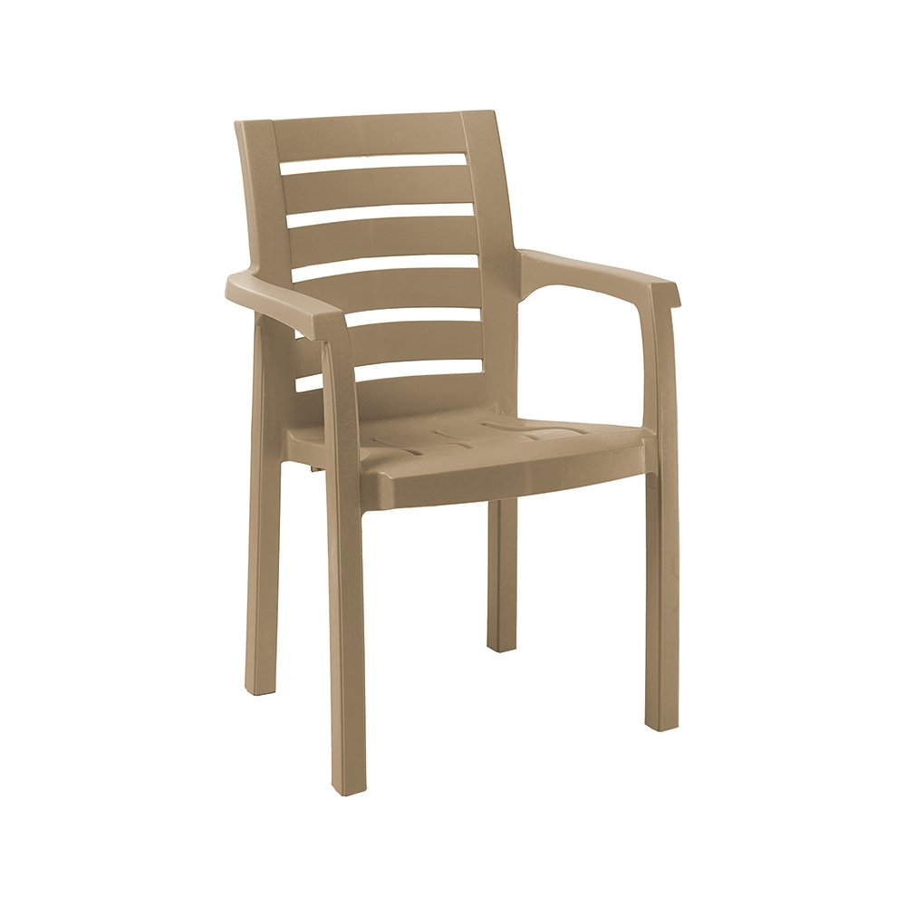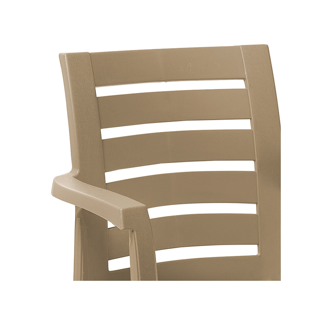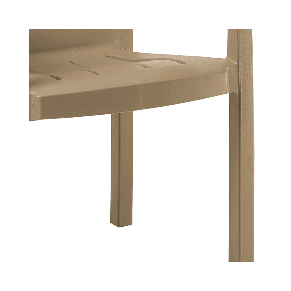Τεχνικά χαρακτηριστικά: * Κατασκευή από εξαιρετικής ποιότητας πολυπροπυλένιο (PP). * Ανθεκτικότητα: Το πολυπροπυλένιο είναι υλικό με μεγάλη αντοχή στις συνθήκες του εξωτερικού περιβάλλοντος (έκθεση σε υγρασία, αέρα, χρήση χημικών κτλ). Μπορεί να καθαριστεί εύκολα με ένα υγρό πανί ή τρεχούμενο νερό, ενώ είναι ένα ανακυκλώσιμο υλικό φιλικό προς το περιβάλλον. * Φέρει ενισχυμένο φίλτρο ηλιοπροστασίας UV για πολύωρη έκθεση στον ήλιο και σε εξωτερικές συνθήκες. * Στιβαζόμενη: Προσφέρει ευκολία στη μεταφορά και στην αποθήκευση. Που τη καθιστά ιδανικό για catering και επαγγελματικούς χώρους. * Προσφέρεται σε χρώμα cappucino