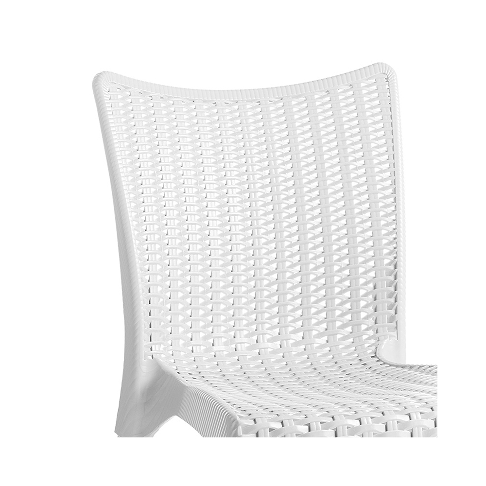 Τεχνικά χαρακτηριστικά: * Κατασκευή από εξαιρετικής ποιότητας πολυπροπυλένιο (PP). * Ανθεκτικότητα: Το πολυπροπυλένιο είναι υλικό με μεγάλη αντοχή στις συνθήκες του εξωτερικού περιβάλλοντος (έκθεση σε υγρασία, αέρα, χρήση χημικών κτλ). Μπορεί να καθαριστεί εύκολα με ένα υγρό πανί ή τρεχούμενο νερό, ενώ είναι ένα ανακυκλώσιμο υλικό φιλικό προς το περιβάλλον. * Φέρει ενισχυμένο φίλτρο ηλιοπροστασίας UV για πολύωρη έκθεση στον ήλιο και σε εξωτερικές συνθήκες. * Στιβαζόμενη: Προσφέρει ευκολία στη μεταφορά και στην αποθήκευση. Που τη καθιστά ιδανικό για catering και επαγγελματικούς χώρους. * Προσφέρεται σε χρώμα λευκό
