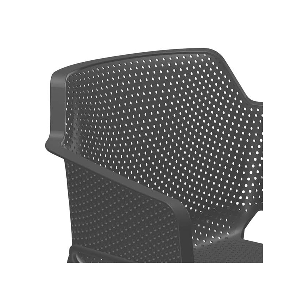 Τεχνικά χαρακτηριστικά: * Κατασκευή από εξαιρετικής ποιότητας διάτρητο πολυπροπυλένιο (PP). * Ανθεκτικότητα: Το πολυπροπυλένιο είναι υλικό με μεγάλη αντοχή στις συνθήκες του εξωτερικού περιβάλλοντος (έκθεση σε υγρασία, αέρα κτλ). Μπορεί να καθαριστεί εύκολα με ένα υγρό πανί ή τρεχούμενο νερό, ενώ είναι ένα ανακυκλώσιμο υλικό φιλικό προς το περιβάλλον. * Φέρει ενισχυμένο φίλτρο ηλιοπροστασίας UV για πολύωρη έκθεση στον ήλιο και σε εξωτερικές συνθήκες. * Στιβαζόμενη: Προσφέρει ευκολία στη μεταφορά και στην αποθήκευση. Που το καθιστά ιδανικό για catering και επαγγελματικούς χώρους. * Προσφέρεται σε ανθρακί χρώμα