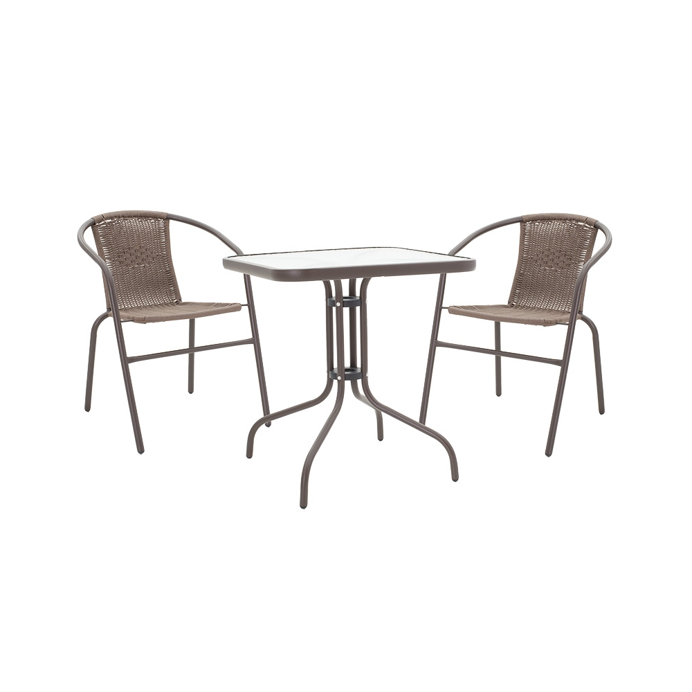 Τραπεζαρία Watson-Obbi σετ 3τεμ pakoworld pe καφέ-μέταλλο 70x70x70εκ